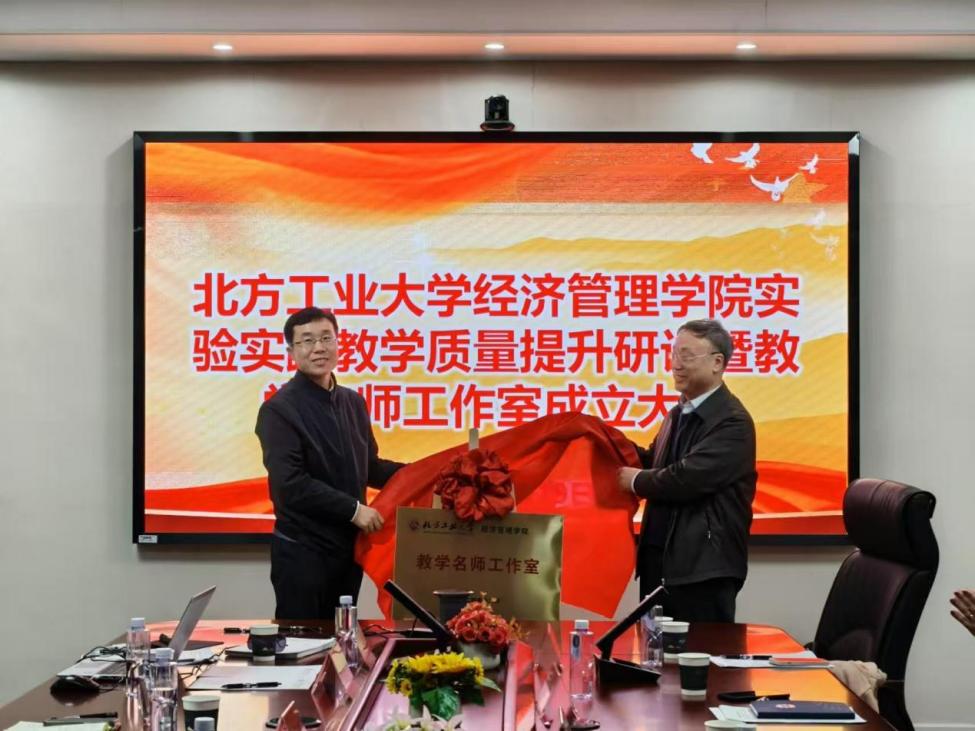 大会的第二个环节是beat365在线唯一官网教学名师工作室的成立仪式。经管学院党委书记谢朝阳和许光建教授共同为教学名师工作室揭牌。赵继新院长介绍了名师工作室成立的背景、主要工作内容及未来规划设想,并表达了希望通过工作室带动引领、助力全院教师教学水平提升的期望。