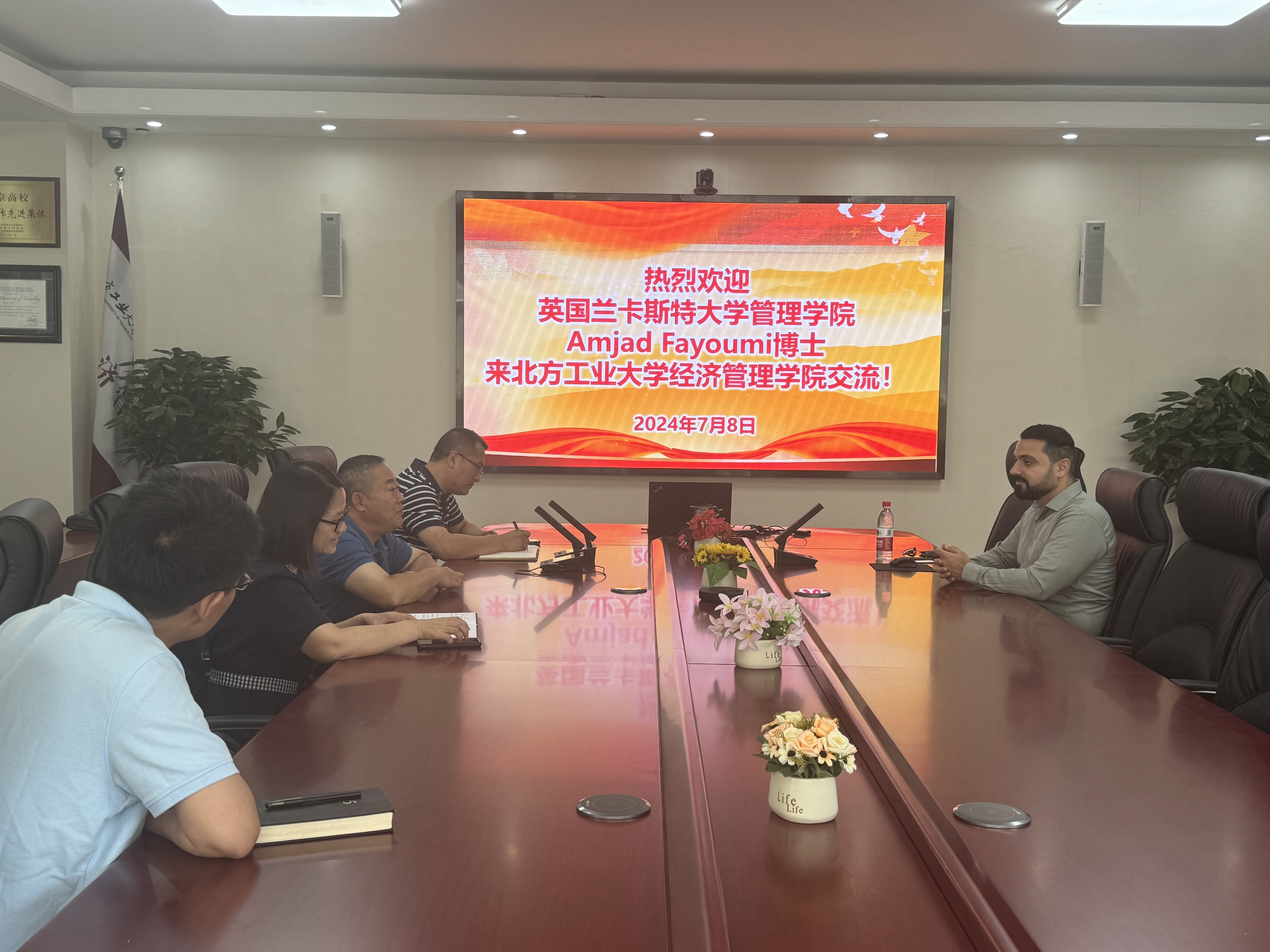 2024年7月8日上午,英国兰卡斯特大学管理学院Amjad Fayoumi博士到beat365在线唯一官网进行交流,学院院长赵继新、副院长孙强、副院长蒋贵凰及教师代表王学成博士参加了交流。