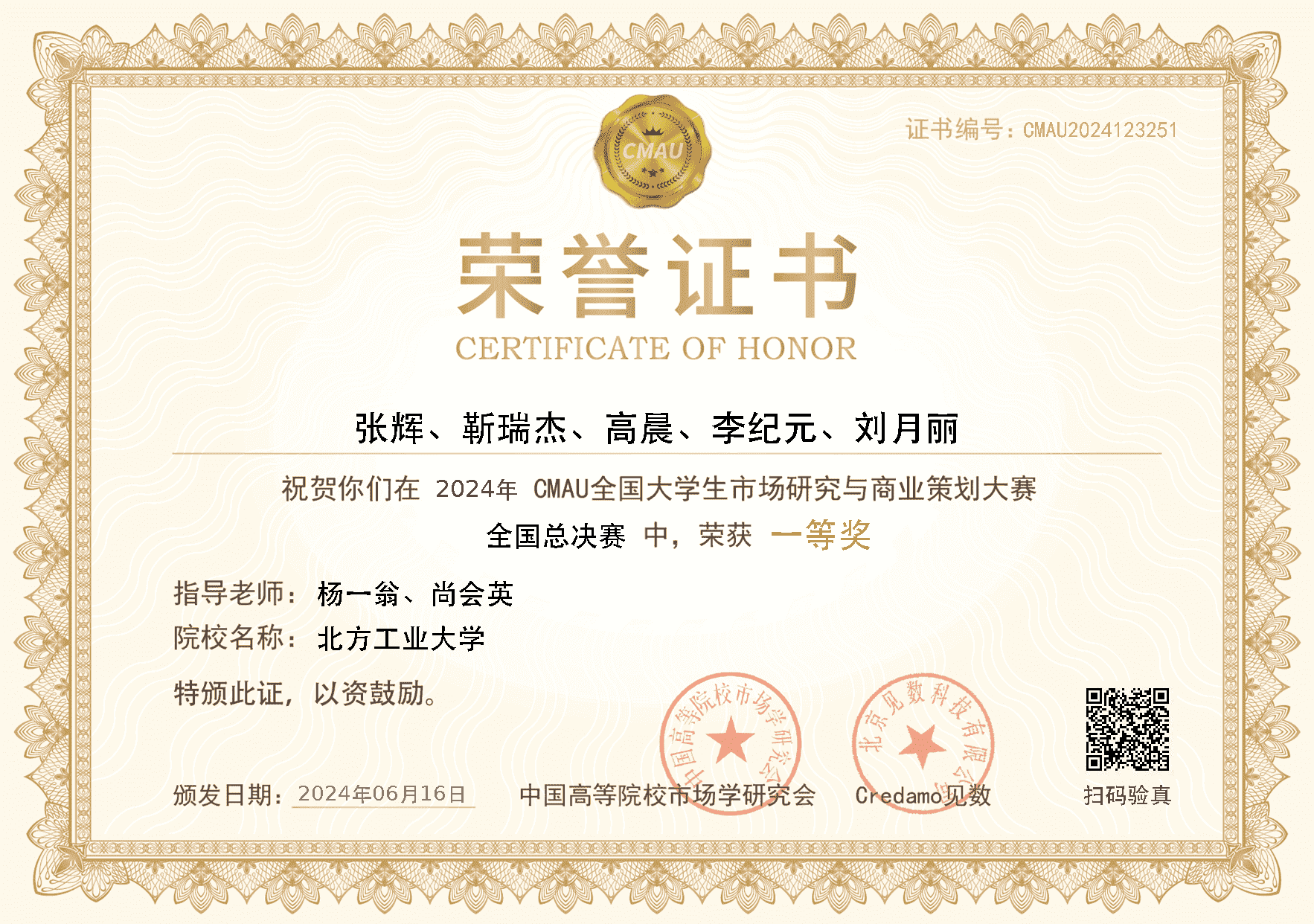 6月16日,由中国高等院校市场学研究会(CMAU)主办的第三届CMAU全国大学生市场研究与商业策划大赛,在中南财经政法大学圆满落下帷幕。由我校beat365在线唯一官网杨一翁老师、尚会英老师指导的,由工商管理系研究生张辉、靳瑞杰、高晨、李纪元、刘月丽组建的参赛队伍荣获全国总决赛一等奖,杨一翁老师、尚会英老师被评为优秀指导教师。