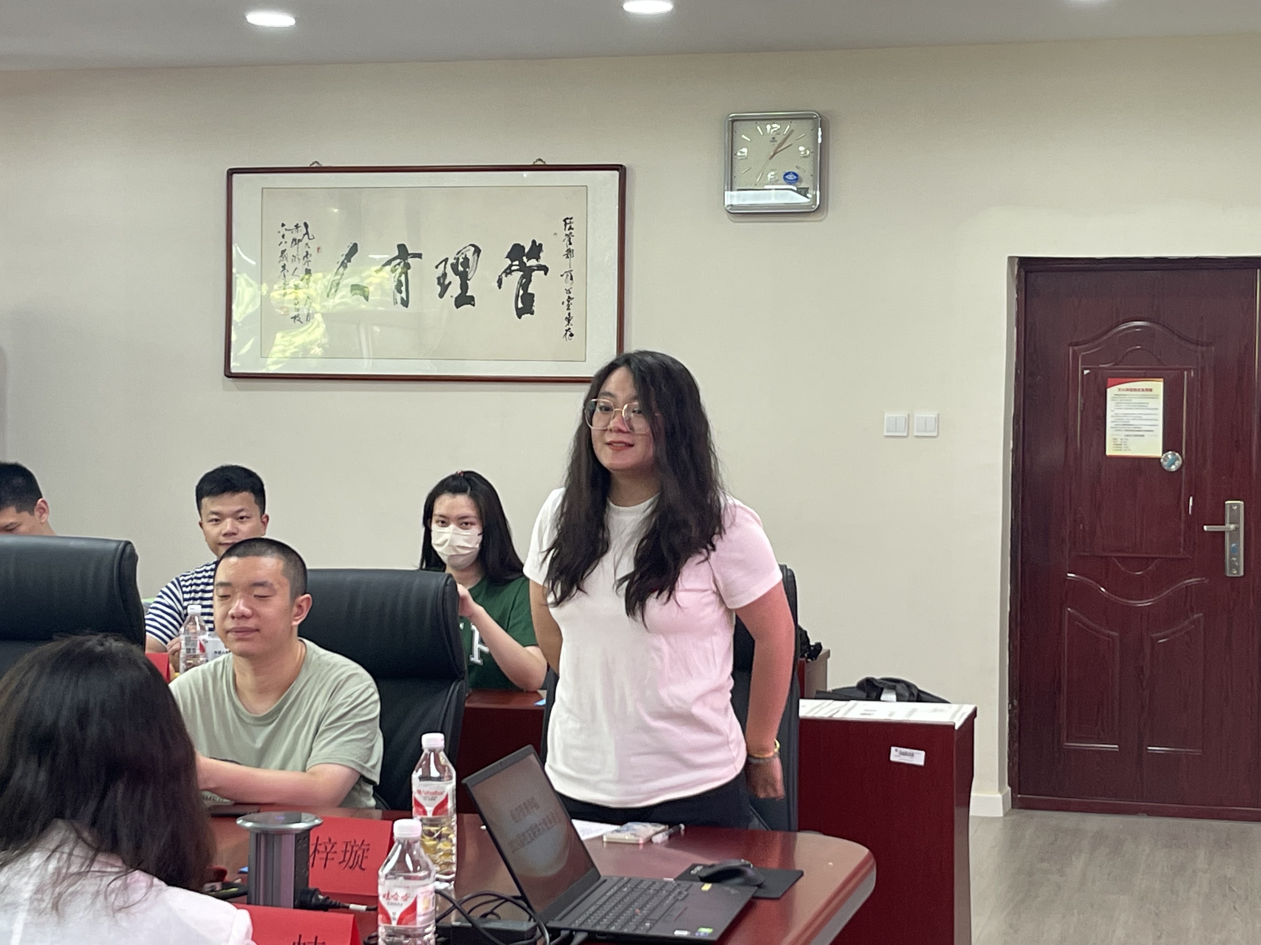 管20-2班帅梓璇代表校友联络大使发言,感谢学校、学院对自己的悉心培养,表示今后将努力履行校友联络大使责任,以校友的身份,继续关心和支持学校和学院的发展,为母校的建设和发展贡献自己的一份力量。