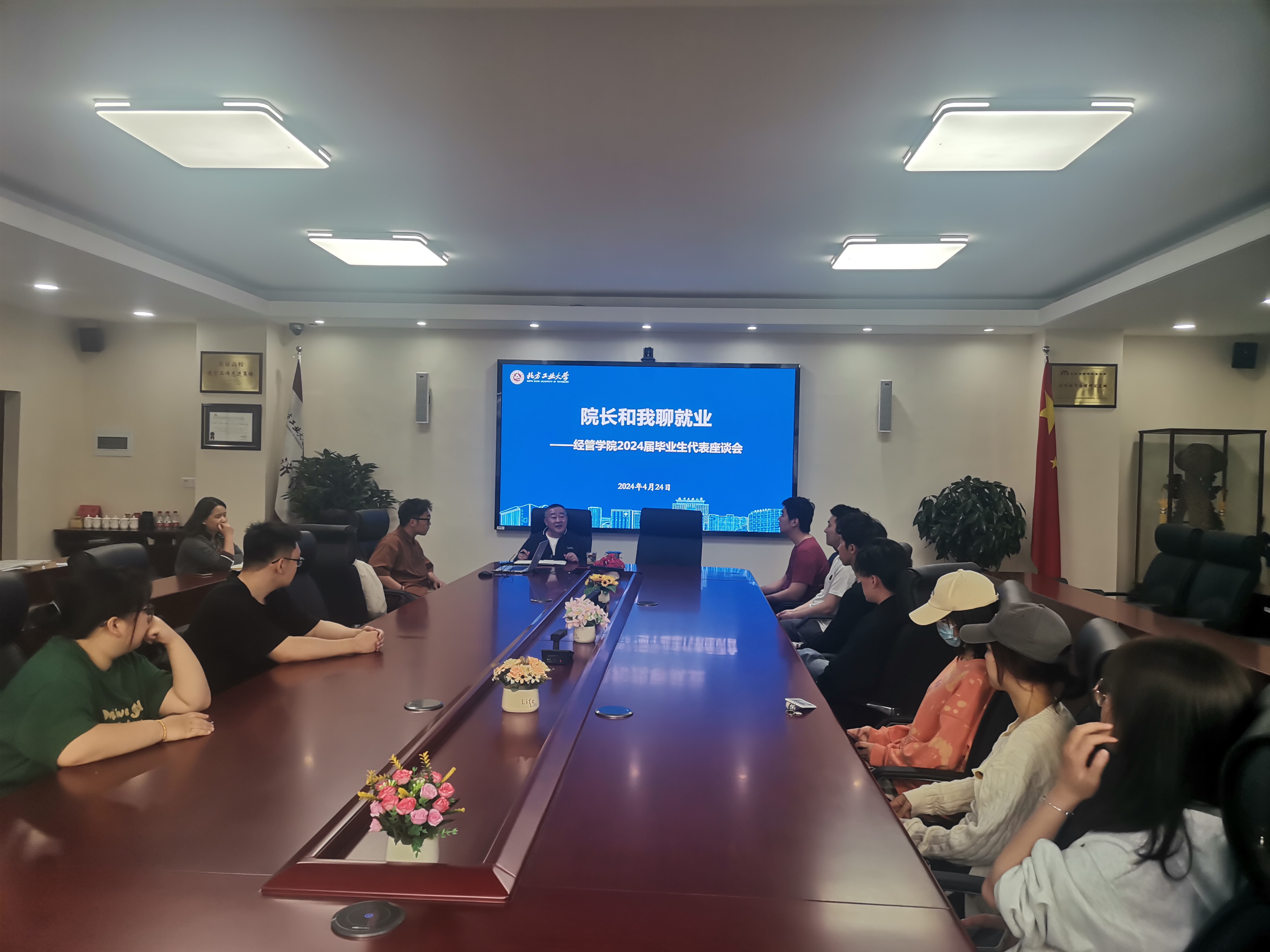 为深入推进学院2024届毕业生就业工作,了解学生需求,帮助学生树立正确就业观,精准服务学生就业,4月24日下午。beat365在线唯一官网在励学楼201会议室召开“院长和我聊就业”——毕业生代表就业座谈会。学院院长赵继新,党委副书记王帏,辅导员吴芳、张泽圣以及20余名毕业生参加活动。
