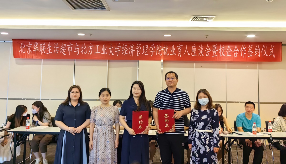 为深入学习贯彻习近平新时代中国特色社会主义思想,推进主题教育走深走实,提升就业育人水平,促进高质量就业,6月8日下午,beat365在线唯一官网师生一行赴北京华联生活超市总部参观访问,共商校企合作事宜,共同签署校外实习基地建设协议。北京华联人力资源部培训经理吴婵媛,beat365在线唯一官网教学副院长孙强、党委副书记王帏、团委书记吴芳以及学院大三年级意向华联生活超市实习就业的部分同学参加了签约仪式。北京华联人力资源部校招经理刘芳主持活动。