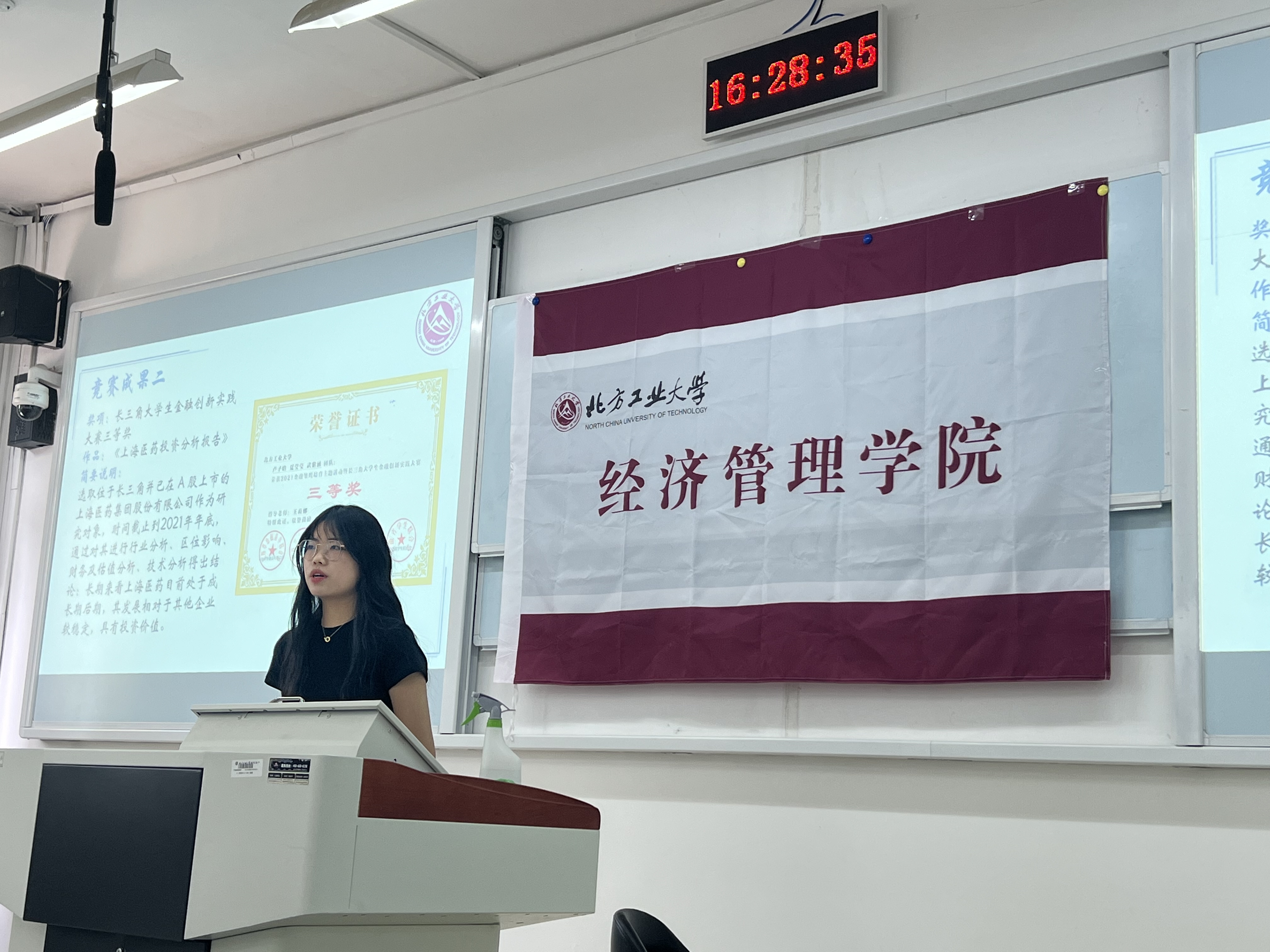 卢子晗同学向大家展示了所参加的两个金融领域高级别竞赛的奖项,分享了参与比赛的过程与合作经历。其中以预测方法为基础完成的《中国铜需求量景气指数编制与预测咨询报告》给大家留下了深刻印象。