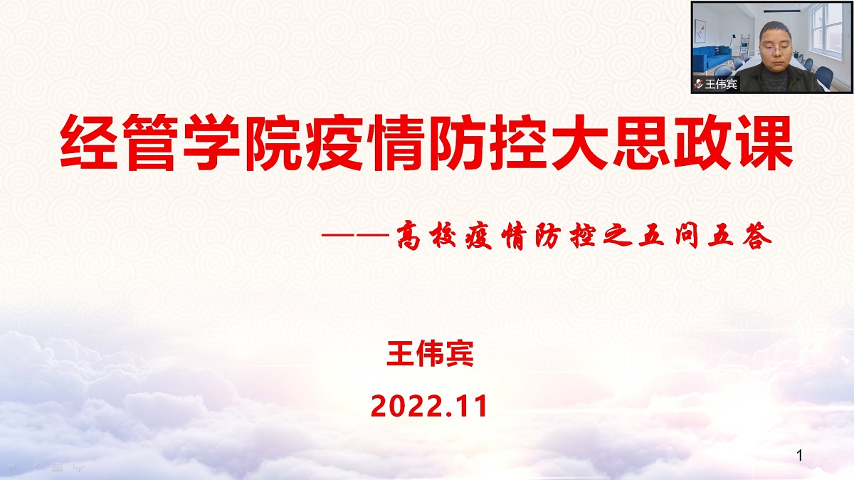 为进一步落实主体责任,重点加强风险管理,坚决守护校园安全,11月30日,beat365在线唯一官网党委书记王伟宾通过线上的方式对班子成员、系主任、支部书记开展了“高校疫情防控之五问五答”专题大思政课。