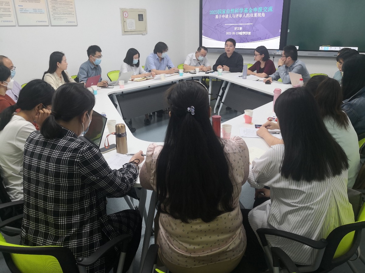 各位老师针对自己今年拟申报的课题选题和过去申报课题得到的评审意见进行了深度的交流和沟通。此次沙龙,为老师们树立了申报国家自然科学基金项目的信心,指明了撰写申报书的方法和思路。学院副院长蒋贵凰表明学院会在后续环节进一步开展系列沙龙活动,促教青年教师间的相互交流学习,从动能、兴趣、思路、方法等多维角度为老师们申报课题提供支持。