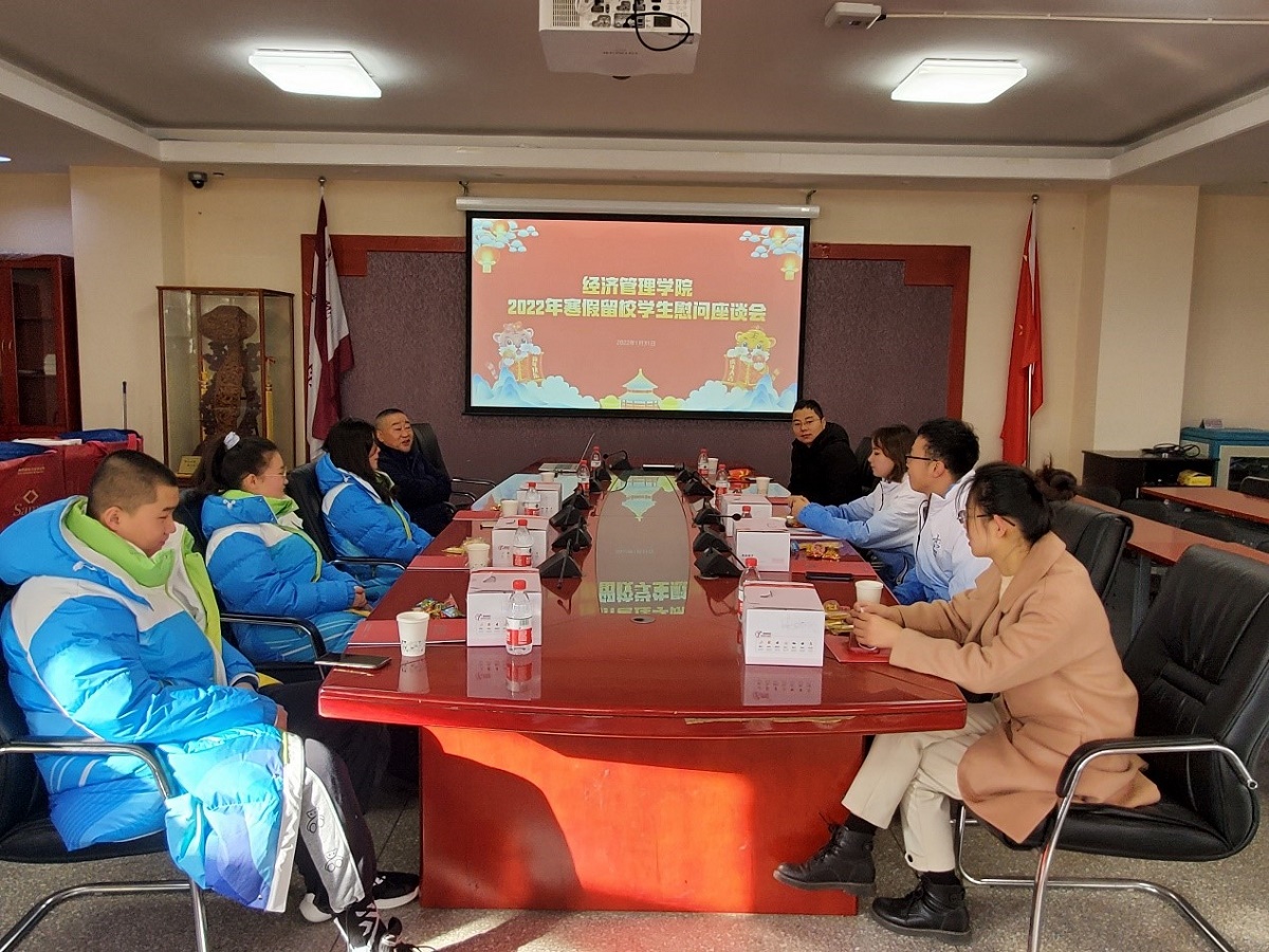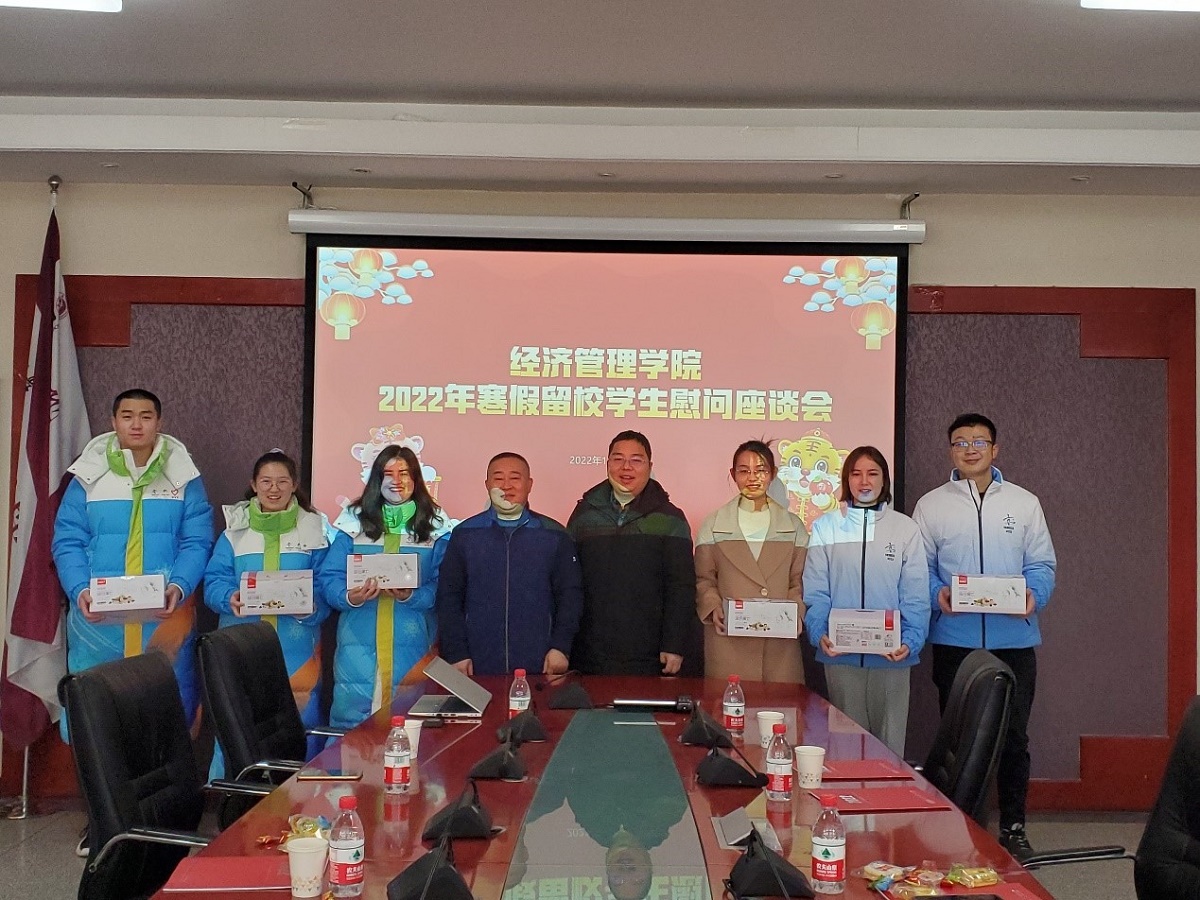 1月31日上午,在除夕之日beat365在线唯一官网在励学楼201会议室举行2022年寒假留校学生慰问活动,学院院长赵继新、党委书记王伟宾、党委副书记赵洁及留校学生参加了慰问活动。