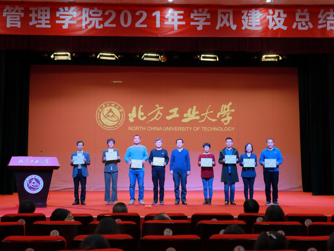 会议伊始,学院党委副书记赵洁对一年来学院学风建设工作进行总结,在肯定成绩的同时也指出了学风建设中存在的问题,为后续学风建设明确了思路和目标。随后,副院长陶晓波代表学院宣读了课程思政优秀团队、课程思政优秀教师、就业工作先进个人、就业优秀指导教师、学风建设先进集体和个人、社会实践和志愿服务先进集体和个人的表彰决定,与会领导依次为获奖代表颁发了证书。