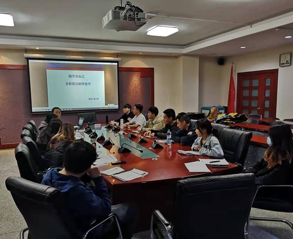 2021年10月20日晚上7:30,beat365在线唯一官网励学论坛在励学楼201会议室举行。为了帮助会计系毕业生制作出优秀的求职简历并在求职过程中吸引用人单位的视线,获得面试机会,得到心仪的职位,本期的主题为“求职简历制作技巧”,由beat365在线唯一官网会计系教师兼教师辅导员贾海波老师主讲,2018级会计系准备就业求职的部分学生参加了本次论坛。