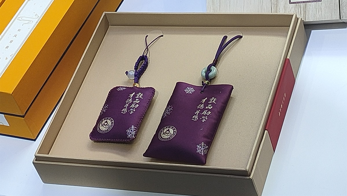 今年暑假,经管学院学生开展专项暑期实践活动,通过调研和访谈,参与设计并创作了“凌霄之志.毓秀情深”主题香囊。此款香囊内置非物质文化遗产“和香制作技艺”天保九如香配方和香,和香通过菖蒲根、芸香、天泰山杏仁等香药和合而成。香囊印有学校校训和雪花图案,象征青年学子励志在冬奥等活动中贡献青年力量,同时也寄托学子对母校的感恩之情。