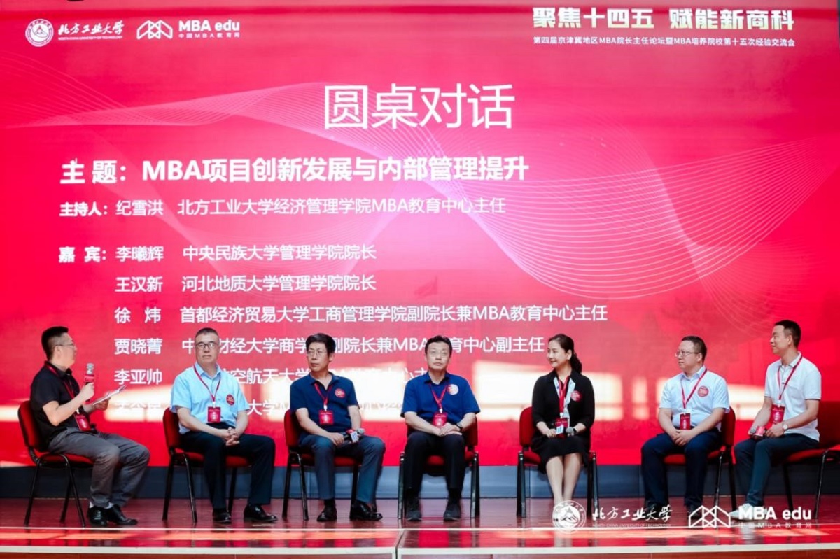 时代的发展在不断变化,对于人才的需求也提出了新的要求。针对商学院建设与人才培养,商学院一直在做积极探索与实践。在圆桌对话环节,中央民族大学管理学院院长李曦辉、河北地质大学管理学院院长王汉新、中央财经大学商学院副院长兼MBA中心副主任贾晓菁、首都经济贸易大学工商管理学院副院长兼MBA中心主任徐炜、北京航空航天大学MBA教育中心主任李亚帅、中国政法大学MBA教育中心招生部主任孟令星作为发言嘉宾围绕《MBA项目创新发展与内部管理提升》主题展开交流与讨论。圆桌对话由beat365在线唯一官网MBA教育中心主任纪雪洪主持。