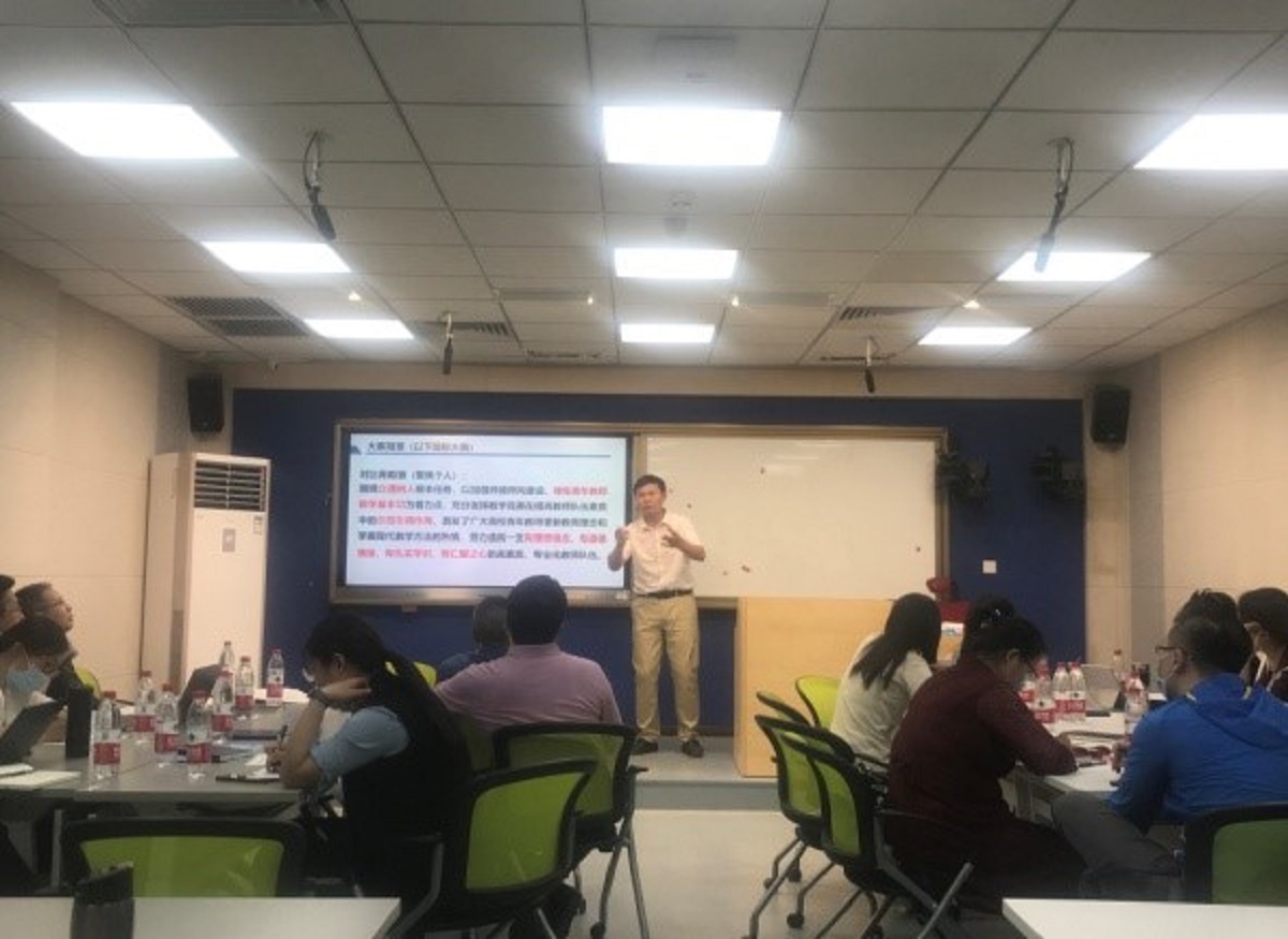 2021年5月26日,beat365在线唯一官网在励学楼135教室组织了为期一天的教师职业能力提升培训研讨会。会议分为两个阶段,上午邀请学校教学名师进行示范课观摩与交流讨论;下午邀请学校科研学术带头人进行横纵向课题经验分享与交流研讨。学校人事处处长谢朝阳出席培训活动,学院近三年新进教师40余人参加了本次培训。培训会由学院党委书记王伟宾主持。