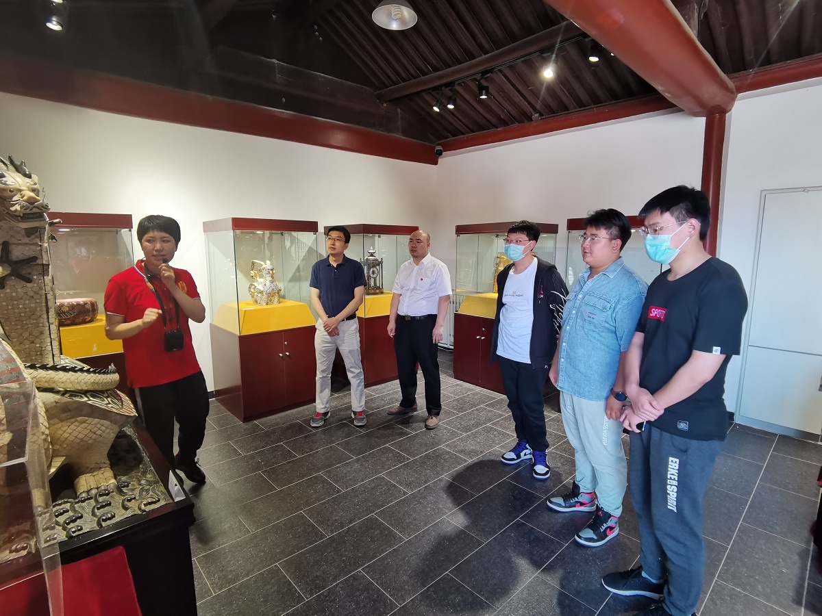 为迎接建党100周年,深入贯彻习近平总书记关于弘扬中华优秀传统文化的重要论述,5月21日下午,beat365在线唯一官网“喜迎建党百年 弘扬传统文化”主题党日活动暨“燕京八绝杯”非遗创意推广大赛在北京燕京八绝博物馆成功举办。beat365在线唯一官网副院长陶晓波、管理系第一学生党支部书记李晨光、北京燕京八绝博物馆馆长柏群、副馆长杨宁,以及学院学生党员代表和参赛同学共40余人一同参加了此次活动。