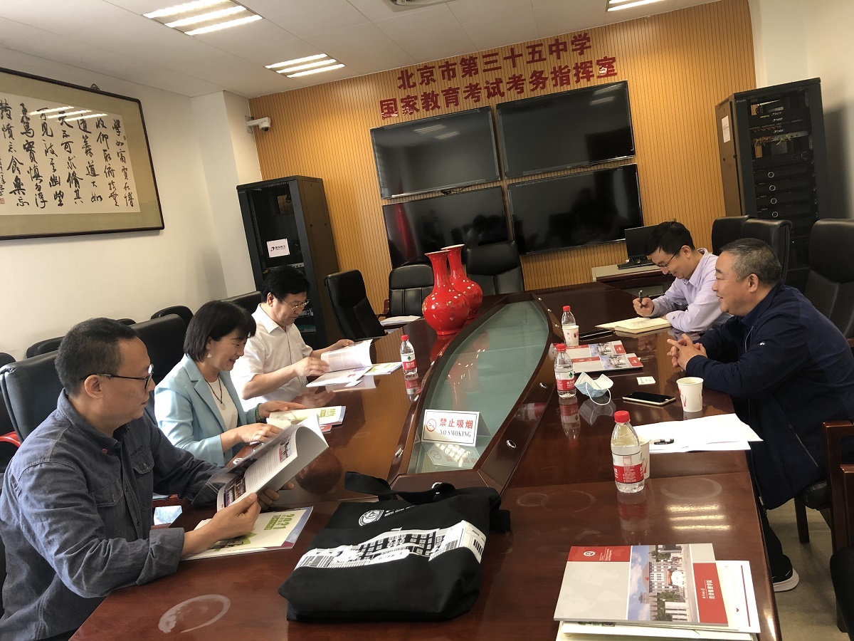 5月14日上午,beat365在线唯一官网院长赵继新教授、副院长陶晓波教授、经济系潘素昆副教授一行3人,前往北京市第三十五中学(以下简称三十五中)高中部开展招生宣传活动。