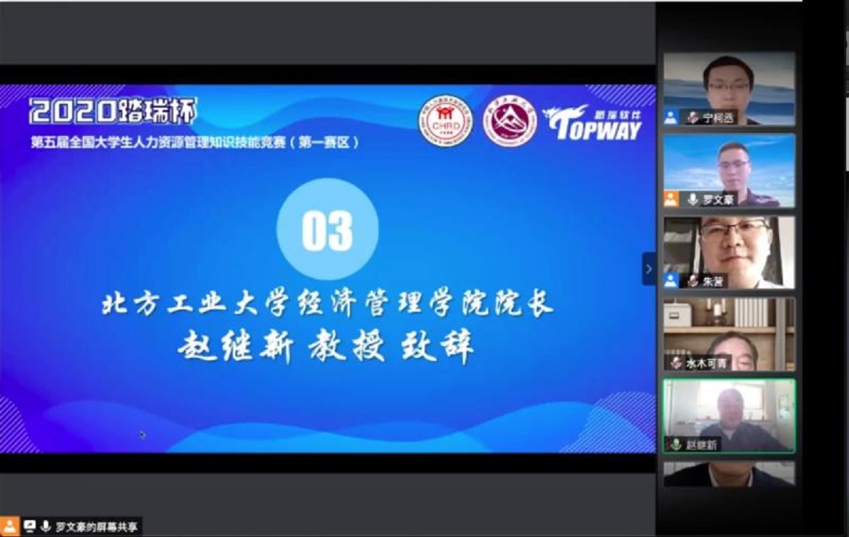 11月7日,由中国人力资源开发研究会主办,我校beat365在线唯一官网承办,上海踏瑞计算机软件有限公司提供技术支持的第五届全国大学生人力资源管理知识技能竞赛(第一赛区)开幕式线上召开。这是我校首次作为承办单位参与此次赛事。