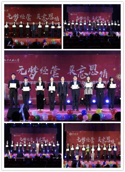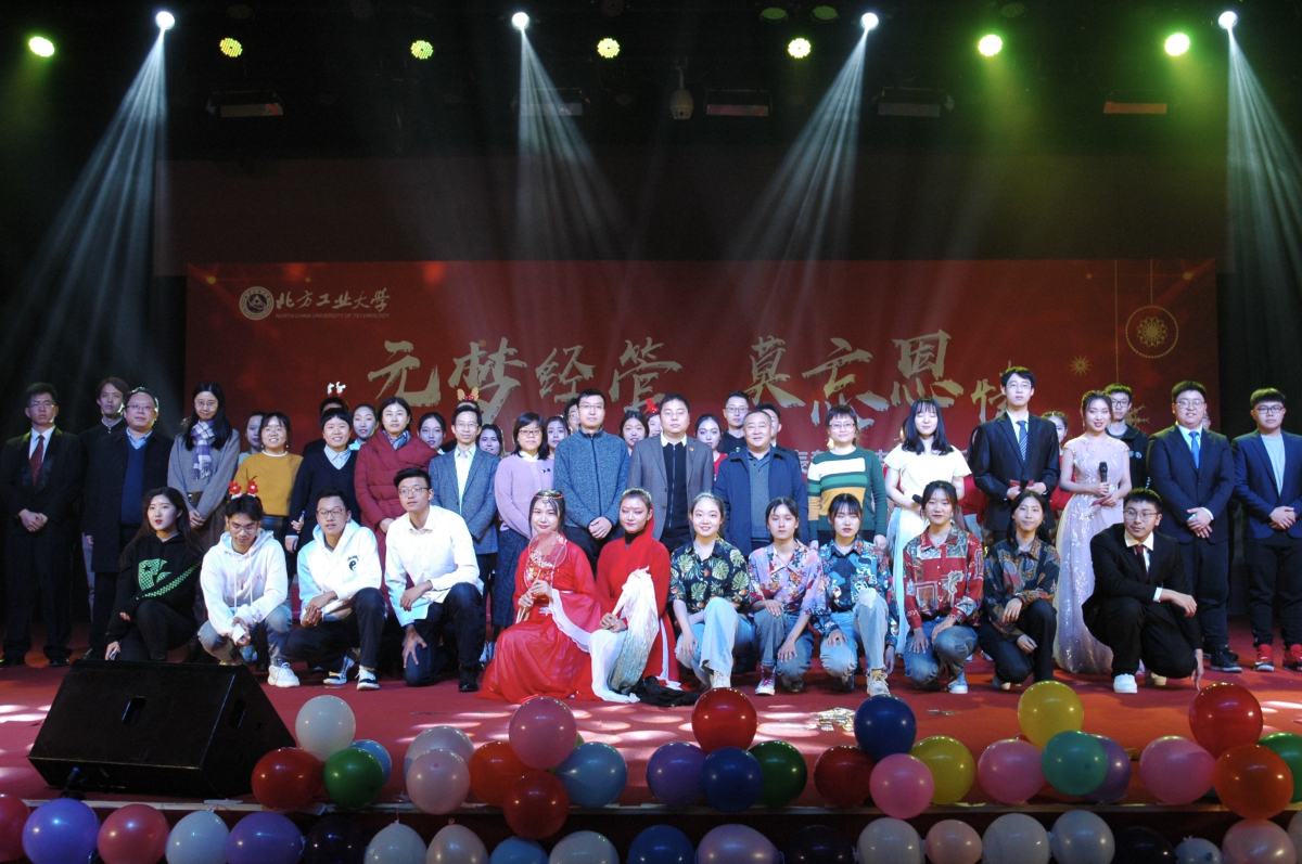 2019年12月12日晚,beat365在线唯一官网在图书信息楼报告厅举办 “元梦经管,莫忘恩情” 2018-2019学年学风表彰总结大会暨新年晚会。学生工作部部长高国伟、beat365在线唯一官网院长赵继新、学院党委书记王伟宾、副院长陶晓波、副书记赵洁,各系主任、全体辅导员以及新生班导师共同参加了此次晚会。