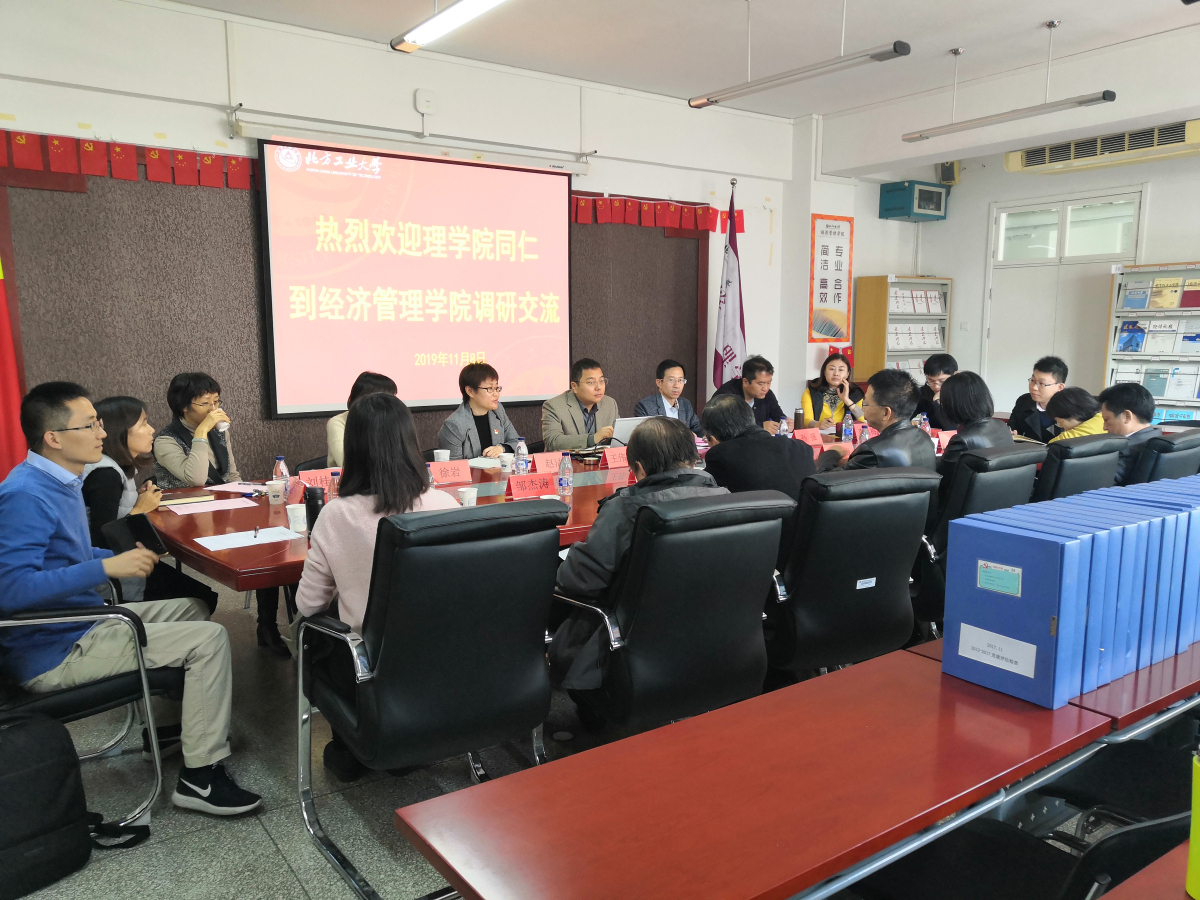 11月8日上午,按照“不忘初心、牢记使命”主题教育安排,理学院党委书记龚维华带队到经管学院励学楼201会议室,联合开展课程思政调研和研讨活动。两个学院班子成员、系主任、责任教授、支部书记及班导师代表20余人参加此次交流活动。beat365在线唯一官网党委书记王伟宾主持研讨活动。