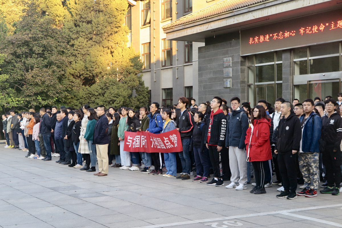 学院院长赵继新教授发表讲话,他同在场师生分享了现场观看新中国成立70周年庆祝大会的感想,希望同学们心怀报国之志,珍惜大学中的美好时光,夯实个人的专业基础,为建设中国特色社会主义、实现中华民族伟大复兴而努力奋斗,勇于筑梦、携手追梦、共同圆梦!