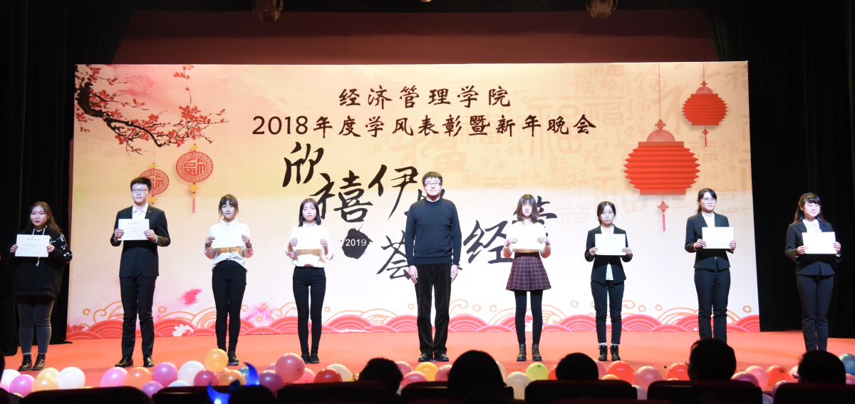 此次晚会围绕着同学们2018年的三个关键词——“坚持、转换、梦想”展开,大家通过自编自导自演的节目,回顾了2018年的过往,同时也对2019年充满了期许和展望。学院辅导员邓鑫、王昕宇以及励学楼管理员李海涛的献唱,更是将整场晚会推向了高潮,展现出了学院师生同乐贺新年的温馨画面。歌曲、舞蹈、小品等节目,也充分展现了经管人勤奋创新、阳光向上、敬业乐群、善于表达的气质品质。