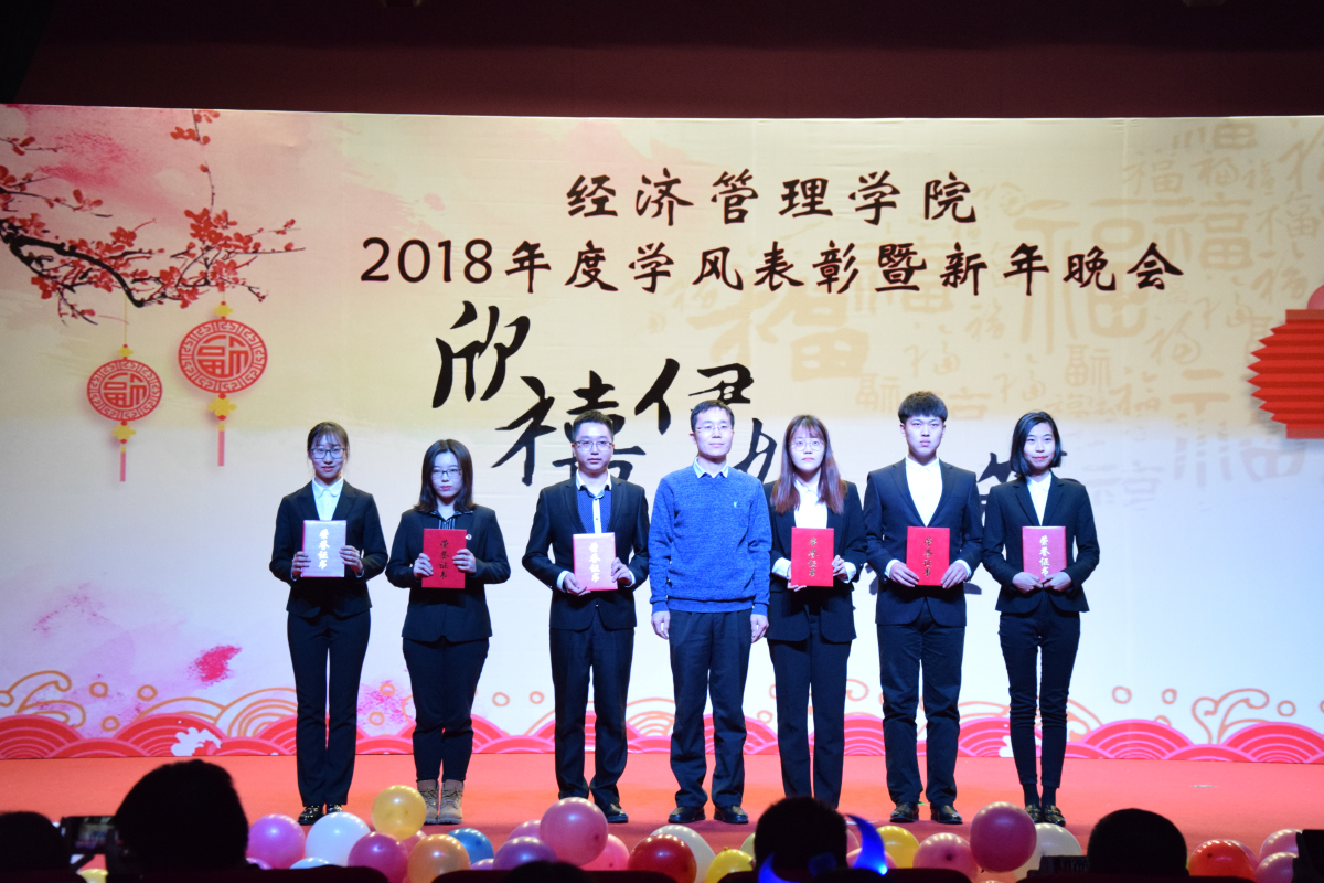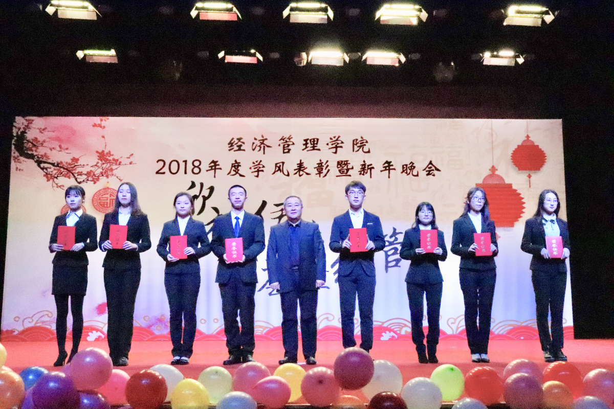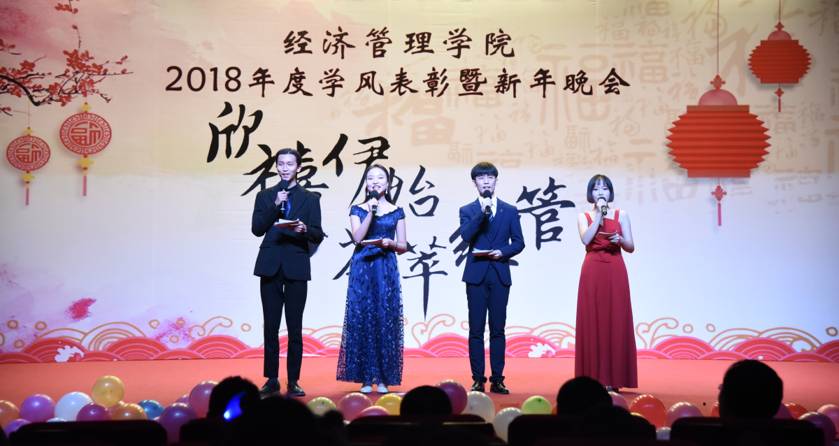 晚会现场,院长赵继新老师向学院全体师生送出了新年寄语,他对大家一年来的表现给予了肯定,表示大家在学校党委的正确领导下,经历了忙碌,也收获了成绩。成绩的取得离不开个人的坚持、更离不开团队的协作。赵老师指出,2018年正值国家改革开放40周年,祖国的快速发展,给我们提供了机遇,更带给我们挑战,他希望同学们都能将个人利益同国家发展相结合,努力成长为栋梁之才,永葆青春活力和热情,发挥“经管人”优良传统,持之不懈、努力拼搏,为国家建设贡献青春力量。