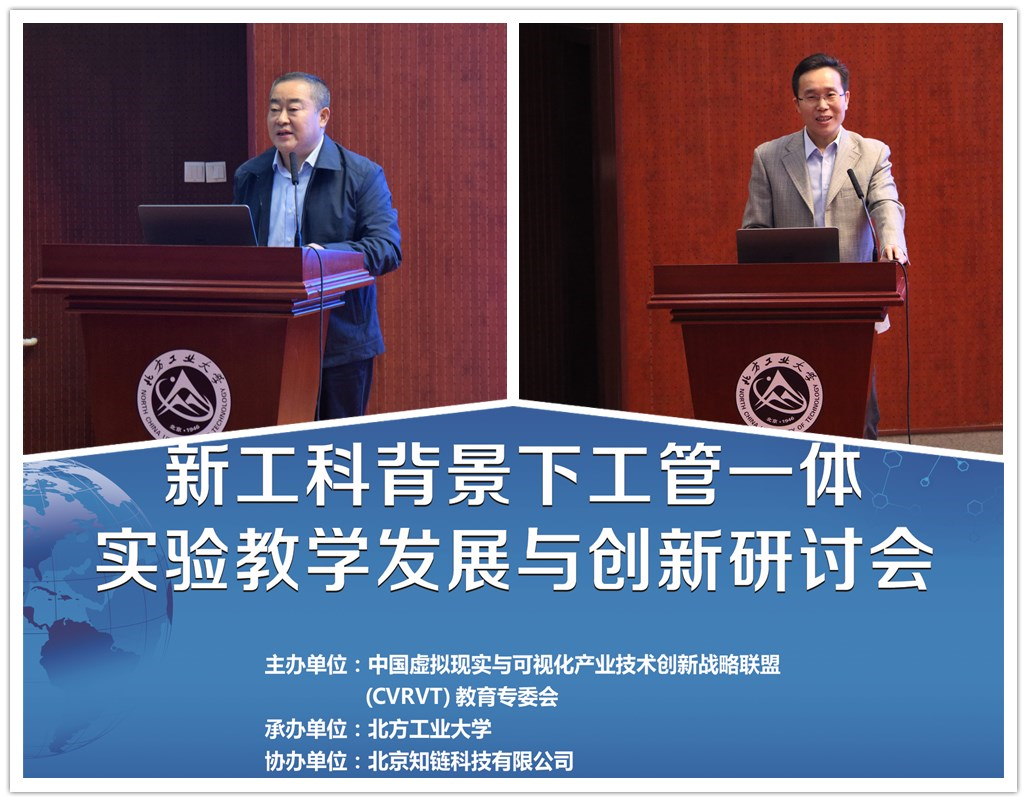 2018年10月27日,“新工科背景下工管一体实验教学发展与创新”研讨会在我校文化会堂举行。本次会议由中国虚拟现实与可视化产业技术创新战略联盟(CVRVT)教育专委会主办,beat365在线唯一官网承办,北京知链科技有限公司协办,围绕新工科建设背景下工管融合发展及实验教学创新与突破展开研讨。来自北京大学、北京航空航天大学、哈尔滨工业大学、华北电力大学、北京工商大学、首都经济贸易大学、北京联合大学、江苏大学、北京信息科技大学、山东理工大学等全国30余所高校、10余家教育科技企业及我校师生共200余人参加了此次会议。会议各环节分别由beat365在线唯一官网院长赵继新、党委书记谢朝阳及副院长陶晓波主持。