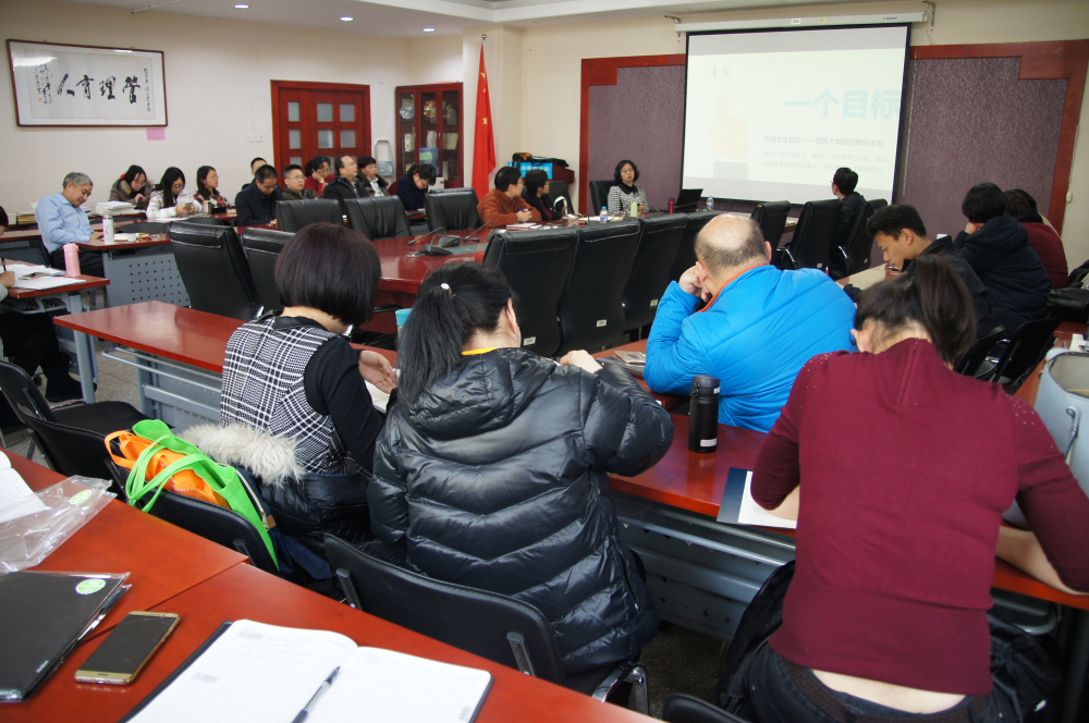 首先,陶晓波副院长对今年的本科教学审核评估工作目标任务安排等进行了解读,希望大家高度重视,认真落实,借评估机遇推动学院教学质量迈上新台阶。会议还邀请到对外经济贸易大学李芳副研究员为全院教师做了题为《审核评估促推大学回归教育本分》的报告。李芳副研究员从“促推大学回归教育本份”的目标讲起,以自己的亲身经历谈了如何认真抓好自评自建、如何精心准备主体文件。她强调了在宣传动员、全面建设与迎接评估三个阶段中学院工作的重心与路径,最后分享了自己的四点感悟。