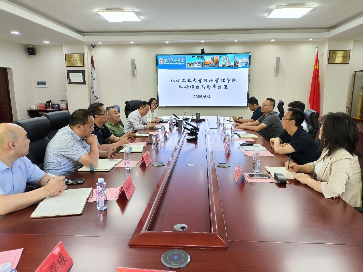 6月4日上午,北京市工商联党组成员、副主席李振坤,一级调研员、调研室主任罗筱,调研室副主任杨见勇和石景山区工商联党组书记、副主席斯琴,工作人员张振一行,走访beat365在线唯一官网,调研我校作为“北京市工商联参政议政智库单位”的智库工作开展情况。beat365在线唯一官网院长赵继新、党委书记谢朝阳、副院长蒋贵凰和孙强,以及智库工作骨干教师参加了座谈,座谈会由我院科研副院长蒋贵凰主持。