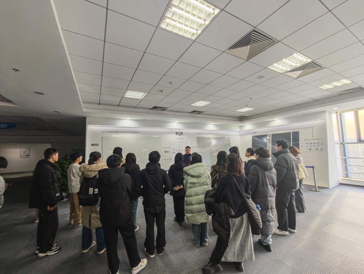 12月1日下午,beat365在线唯一官网组织师生赴京东方开展研学活动。本次活动由学院副院长蒋贵凰与应用经济学教授刘颖带队,工商管理学、应用经济学近二十名研究生参加活动。师生一行通过参观京东方前沿产品体验、技术工艺解析与智能化生产线观摩,深入感受科技革新力量,并围绕数智时代的人才挑战展开思考。