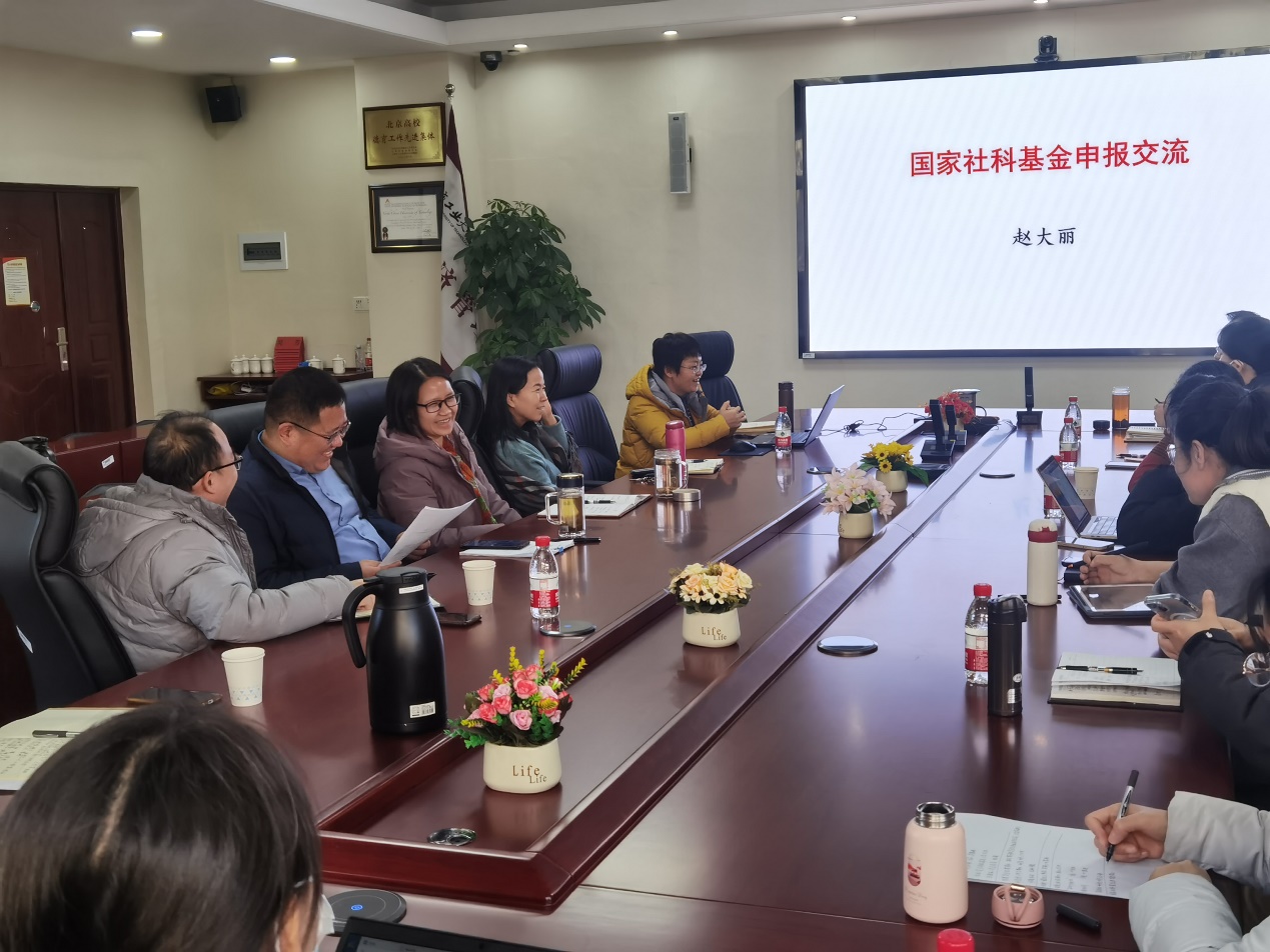 随后,2023年国家社会科学基金一般项目获得者,赵大丽老师,以自己申报成功的课题为例,分享了自己在申报过程中积累的经验和教训。鼓励老师们把握热点,坚定信念,注重细节,摆正心态,踏实打磨课题申报书,不间断的耕耘,定会获得最终的成功。