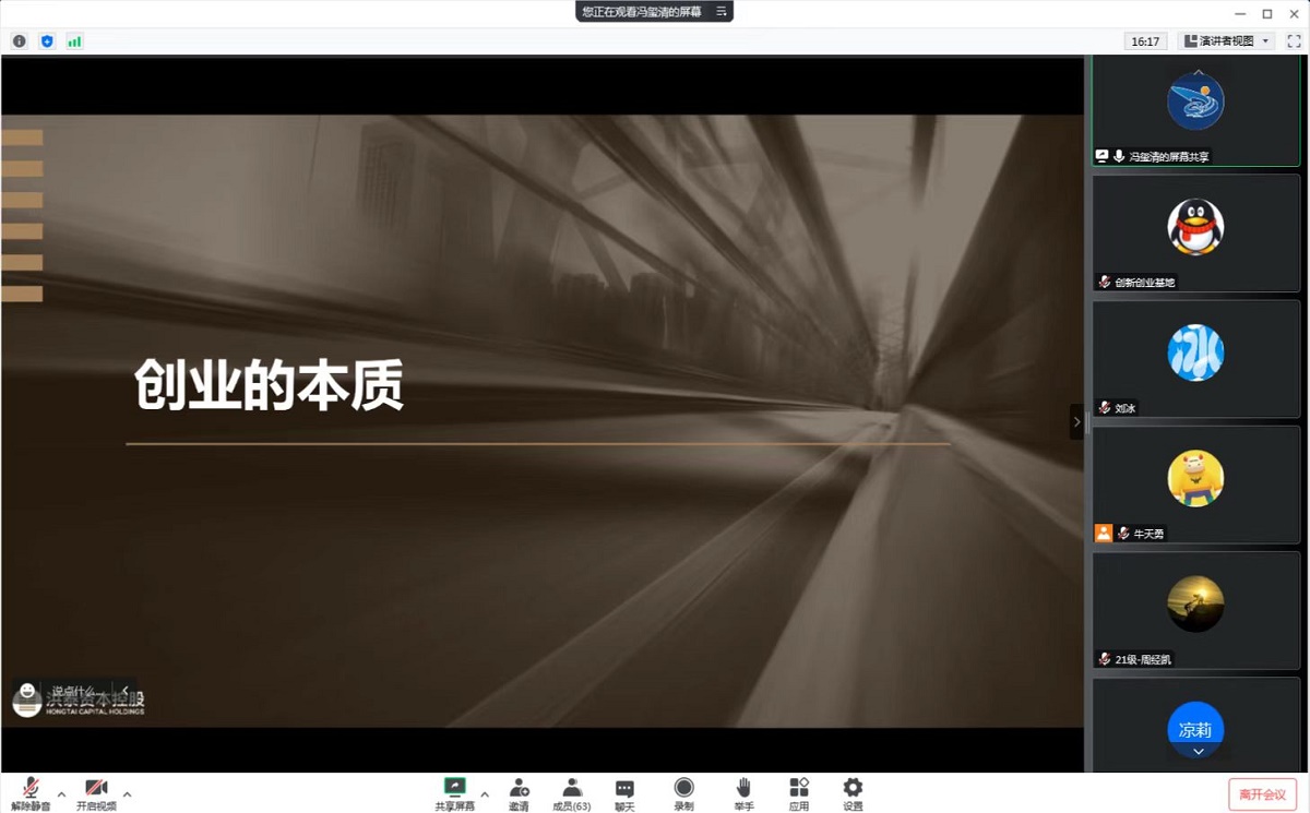 11月26日上午,beat365在线唯一官网通过腾讯会议在线举办了“创新创业导航”系列讲座第三讲。洪泰智造合伙人兼中国国际“互联网+”大学生创新创业大赛、“挑战杯”系列竞赛总决赛评委冯玺清先生以“创业大赛优胜指南”为题与我校八十余名师生开展了在线报告与交流。讲座由beat365在线唯一官网创新创业基地刘冰副教授主持。