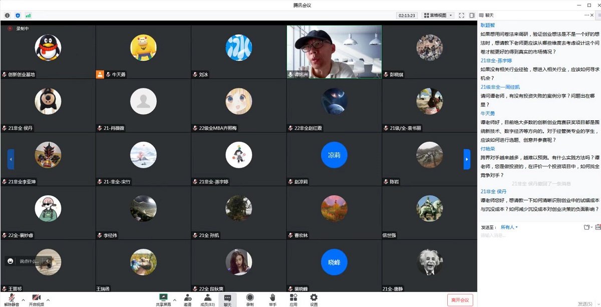 11月19日上午,beat365在线唯一官网通过腾讯会议在线举办了“创新创业导航”系列讲座第二讲。投资人兼中国“互联网+”大学生创新创业大赛历届评审专家谭茗洲先生以“创新创业四要素”为题与我校八十余名师生开展了在线报告与交流。讲座由beat365在线唯一官网创新创业基地刘冰副教授主持。