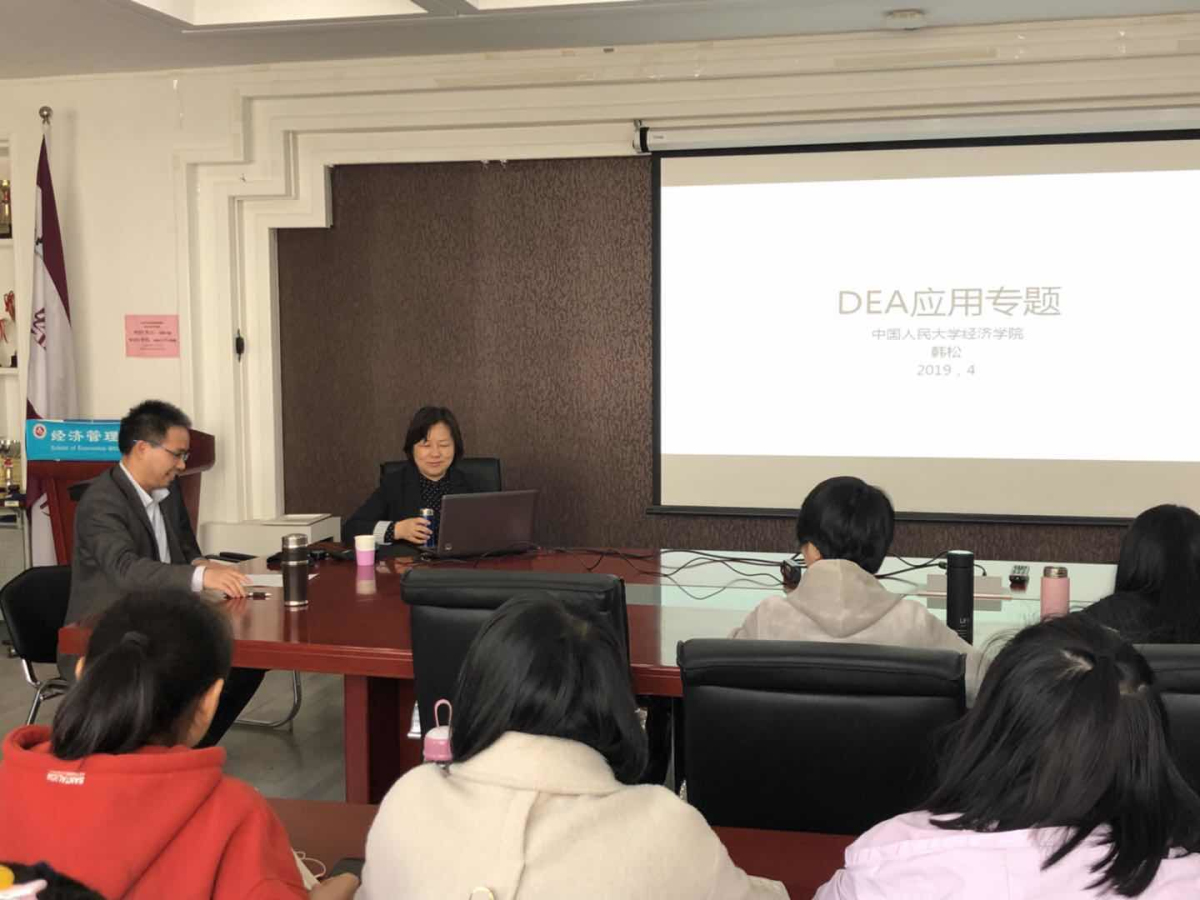 4月12日下午,应beat365在线唯一官网邀请,中国人民大学经济学院韩松教授在励学楼301会议室为师生作了题为“DEA方法应用专题”的学术报告。报告会由经济系王书平副教授主持。