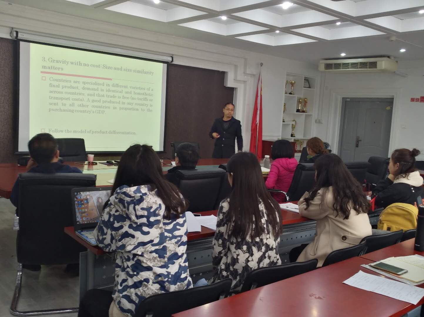 林发勤副教授通过万有引力模型,结合大量实证分析研究,详细讲解了该模型的理论基础及相关理论,未来发展趋势。学院师生围绕报告关键问题与林副教授进行了充分地交流,林副教授的精彩讲解,获得了与会师生的一致好评。