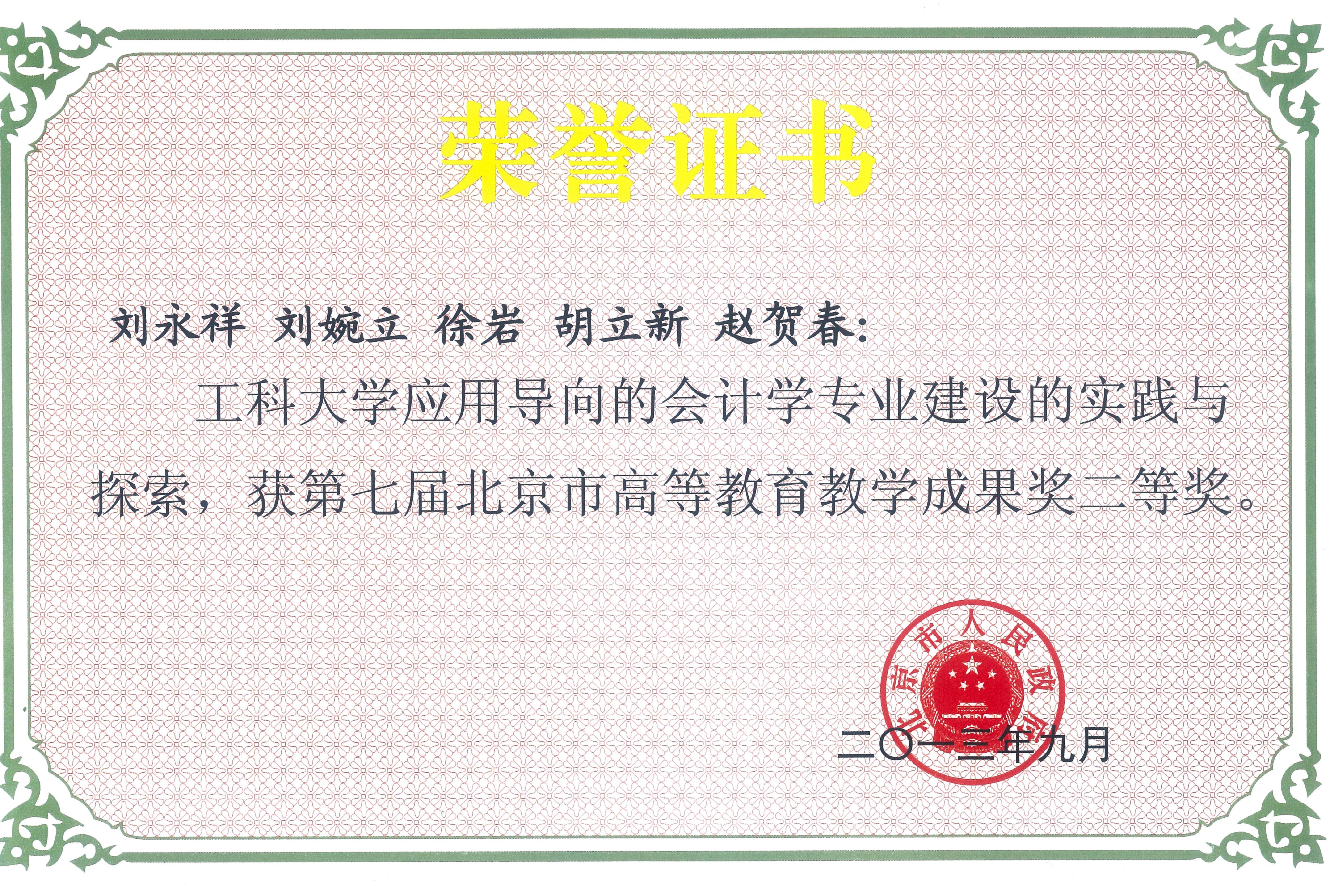 2012年,会计系一项教改课题获得beat365在线唯一官网高等教育教学成果特等奖,北京市教育教学成果二等奖。