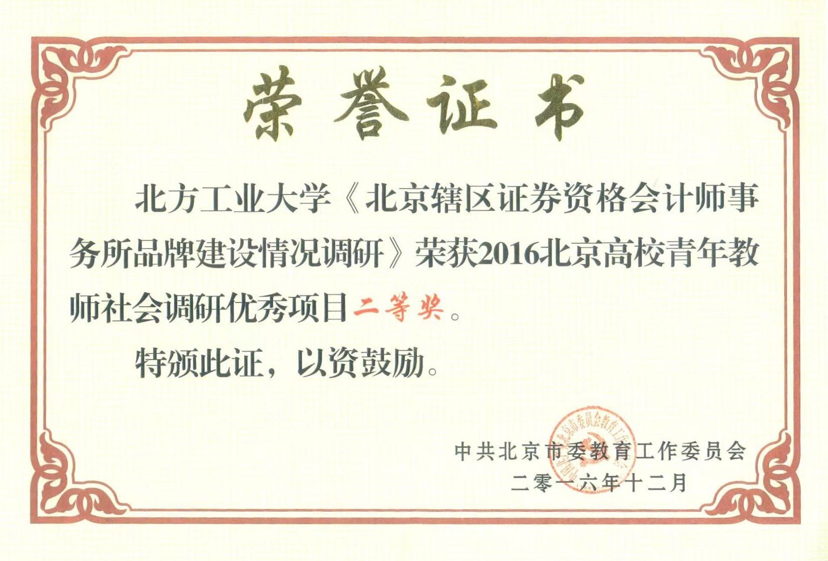 2016年,我校会计学专业在北京市高校专业评估中名列市属高校第3位。