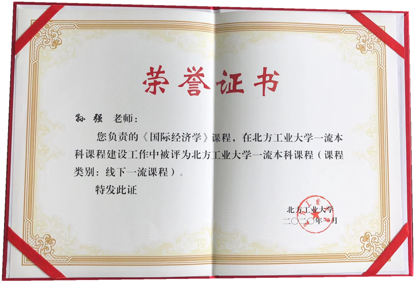 孙强老师负责的《国际经济学》课程被评为 beat365在线唯一官网一流本科课程 |