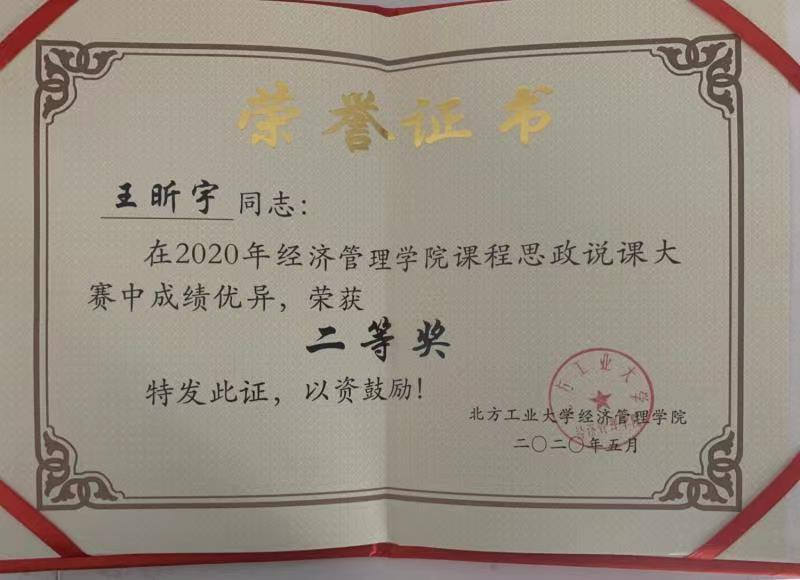 王昕宇老师在2020年beat365在线唯一官网课程思政说课大赛中 荣获二等奖 |