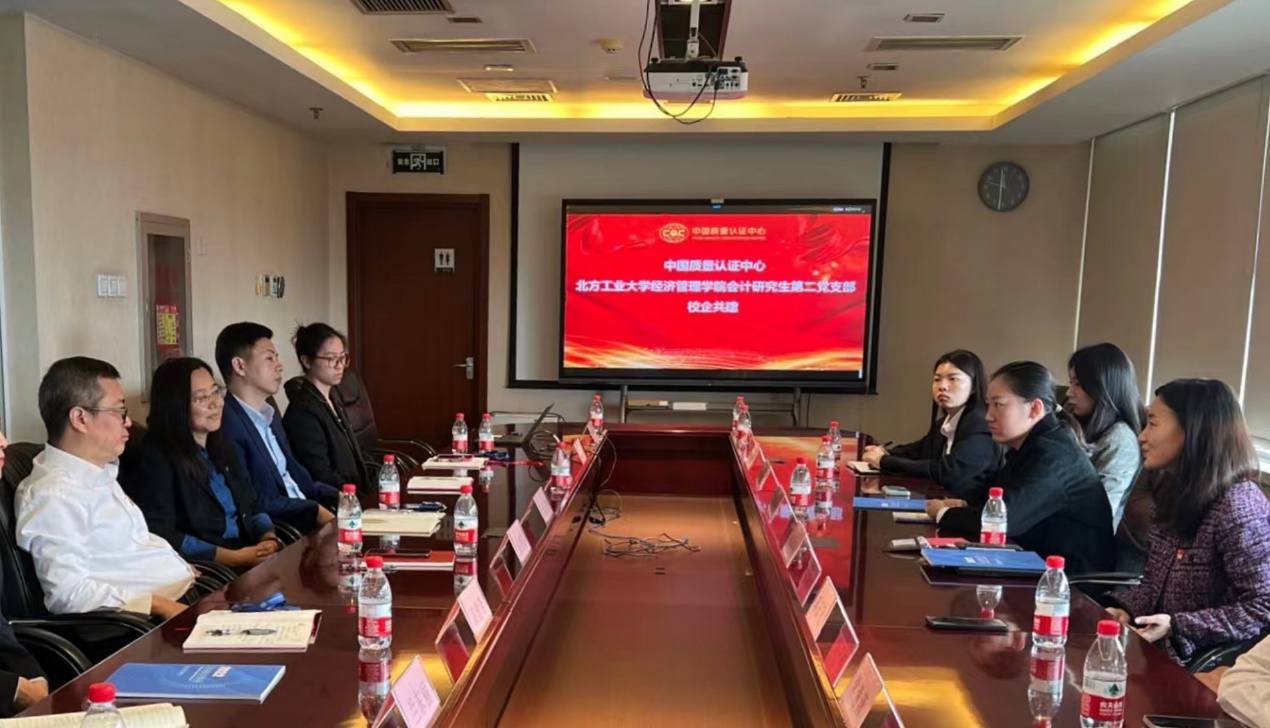 11月2日上午,经管学院会计研究生第二党支部在支部书记黄晓蓓副教授的带领下,赴中国质量认证中心(以下简称CQC)召开“党建引领促发展,校企合作开新篇”红色“1+1”共建活动。支部学生党员代表与CQC财务总监潘寒阳、财务部党支部书记武芹等相关人员组织了座谈交流会。