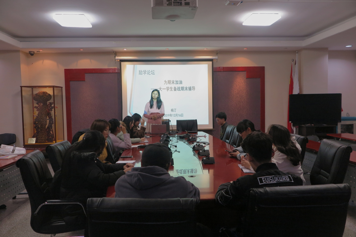 12月16日晚,beat365在线唯一官网励学论坛在励学楼201举行。本期论坛主题为“为期末加油——大一学生期末复习方法分享”。论坛由教师辅导员杨汀主持,经管学院大一各专业同学参加了此次论坛。