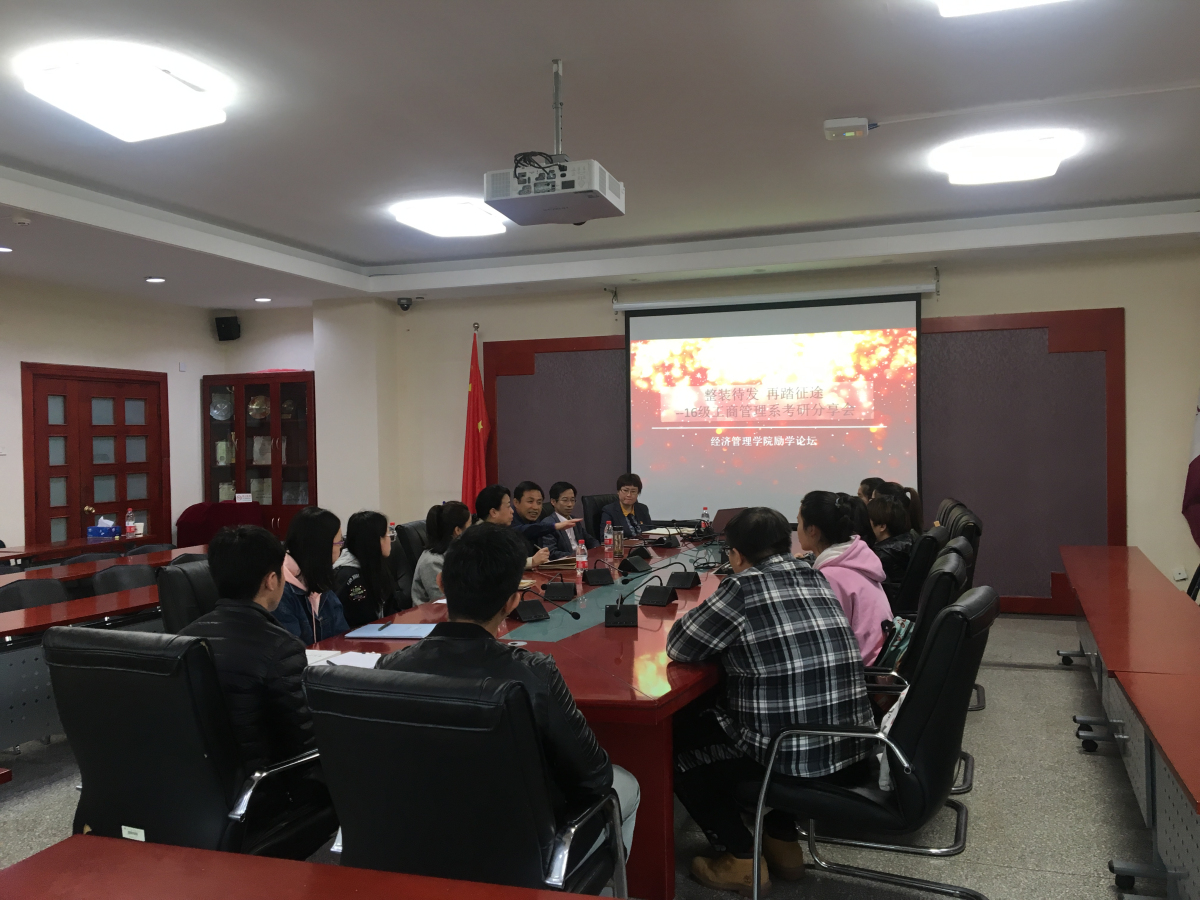 4月28日下午,beat365在线唯一官网在励学楼201会议室组织了管理专业考研分享师生面对面交流活动,本次论坛邀请到了企业管理方向责任教授张欣瑞、管理系主任郑强国、管理系教工党支部书记范景军,本次论坛由学院党委副书记赵洁主持。