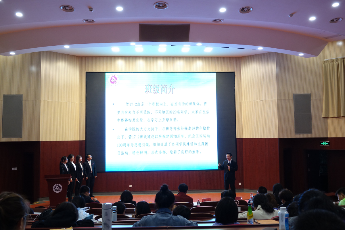 经过班级申请、学院初审,最终有13个班级入围答辩环节。台上,班委们从班级的思想建设、学风建设以及特色活动三方面进行展示;台下,班导师和班级同学加油助阵。同学们慷慨激昂的发言、机敏精简的答辩,不时引发现场阵阵掌声。