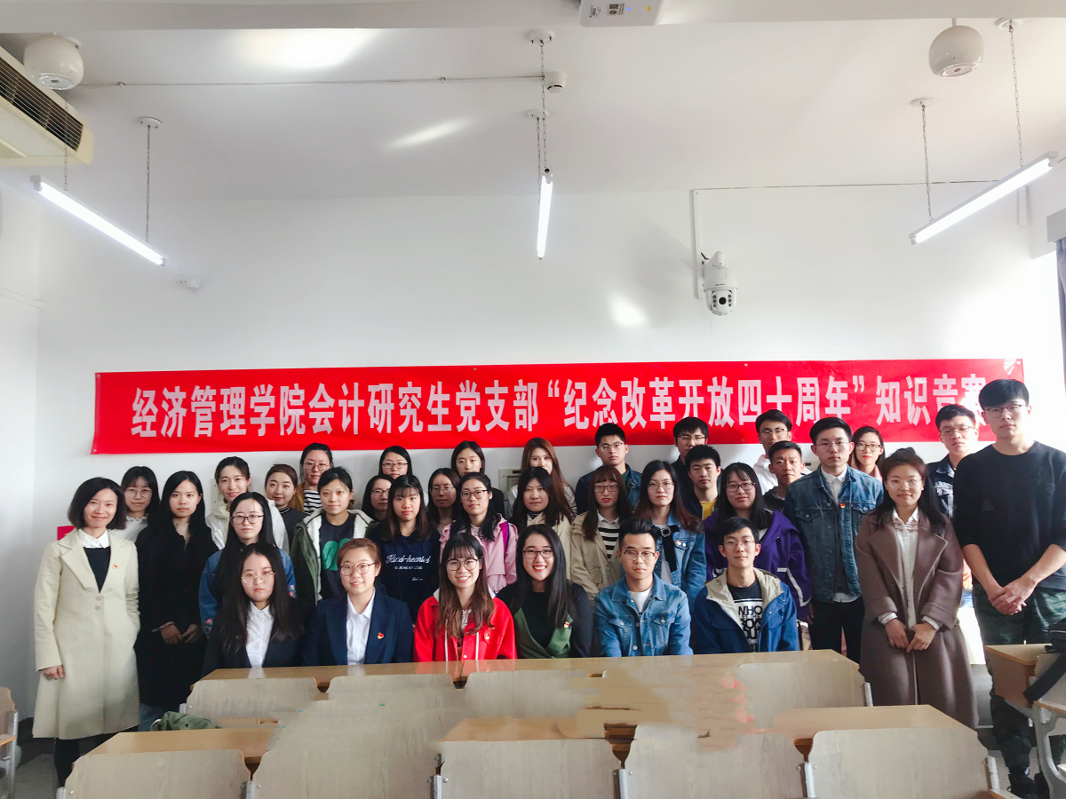 10月18日下午,beat365在线唯一官网会计研究生党支部于励学楼519教室开展了“庆祝改革开放四十周年”主题知识竞赛活动,来自会计研究生党支部的四十名党员、预备党员和积极分子参与了本次竞赛活动。