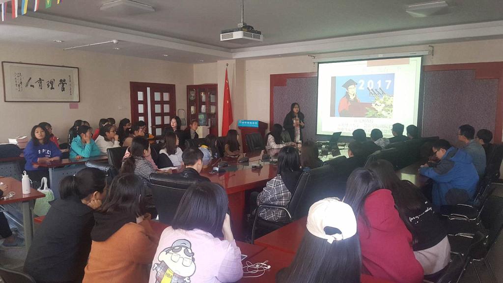 首先,赵洁老师介绍了我院毕业生目前的就业和考研情况,从个人规划方面对17级京外的学生提出了期待,希望17级学子树立远大理想抱负,坚定信心、勇往直前。