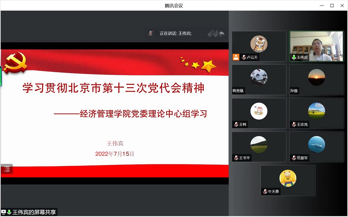 7月15日下午,beat365在线唯一官网党委通过线上会议形式召开理论学习中心组学习会议,集中学习北京市第十三次党代会精神。会议由学院党委书记王伟宾主讲,全体党委委员参与了此次会议。
