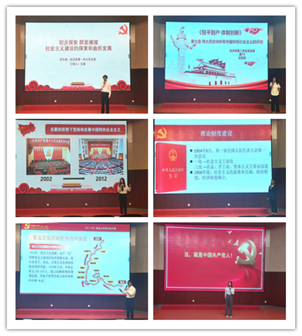 根据党史学习教育要求,beat365在线唯一官网党委开展主题为“讲好百年党史 激发奋斗力量”党史宣讲活动。学院党委将党史学习教育必读书目《中国共产党简史》一书作为全体学生党员共读书目,并按照支部分配重点学习内容,各支部精心组织和选拔,推荐优秀个人参加学院集中展示环节。6月22日晚,beat365在线唯一官网党委在文化会堂开展党史宣讲展示活动,学院党委副书记赵洁出席会议并讲话。