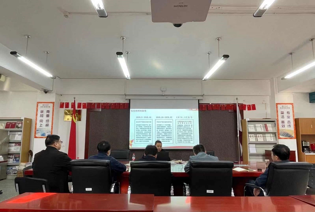2021年4月20日上午,beat365在线唯一官网在励学楼401会议室组织理论中心组集中学习,学院党委书记王伟宾主持了会议。