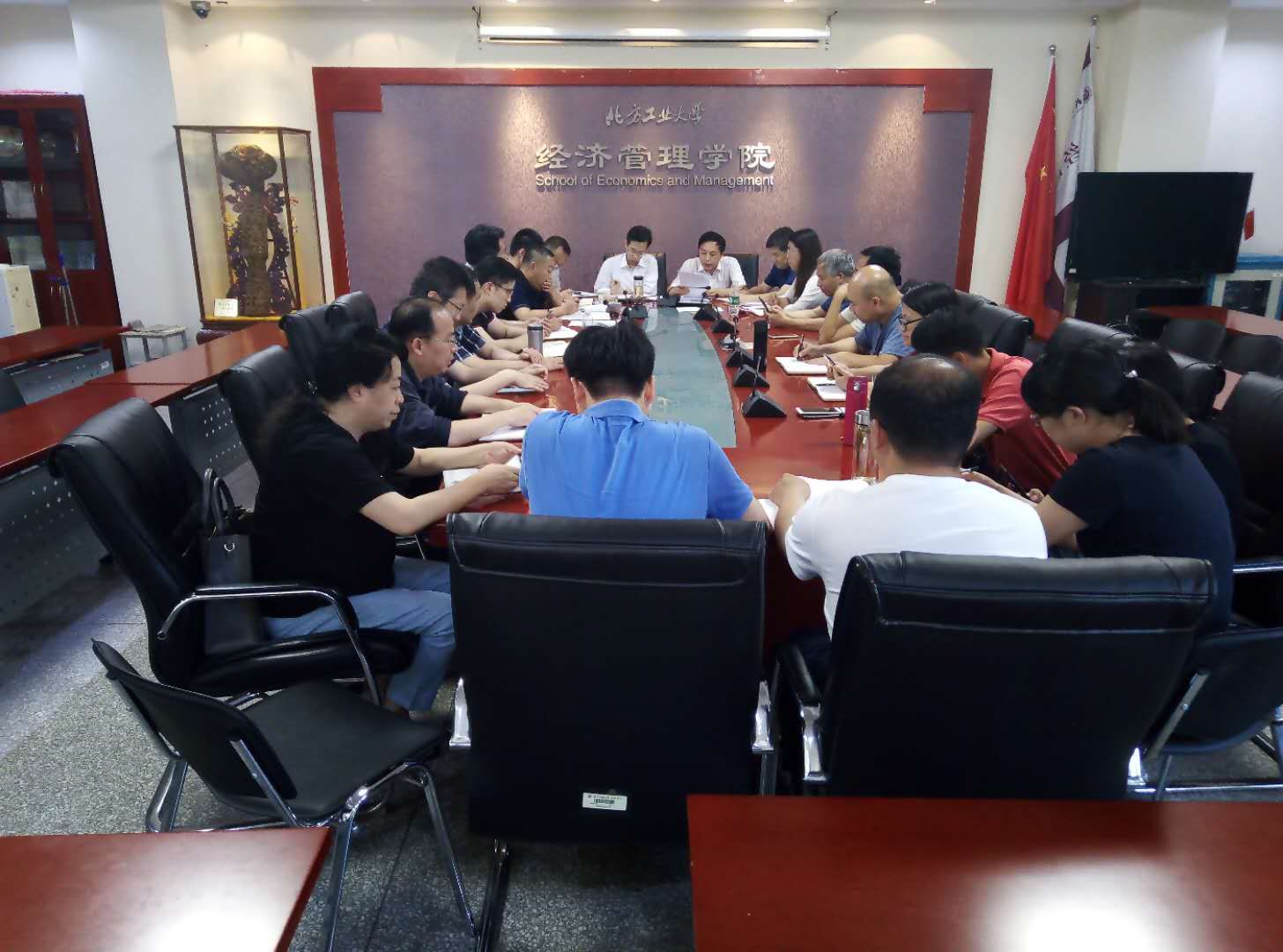 6月13日下午14:00,按照学校党委要求,beat365在线唯一官网管理系全体教师在励学楼201会议室认真学习了《新时代北京高校职业行为十项准则》、《北京高校教师师德考核办法》、《关于北京高校教师师德失范行为处理的指导意见》三个文件,会议由管理教工支部书记范景军老师主持,beat365在线唯一官网院长赵继新一同参加了此次学习。
