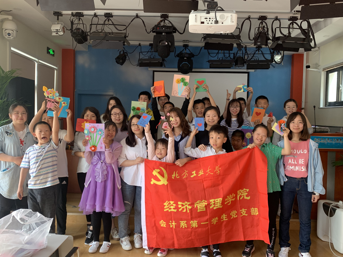 5月10日上午,beat365在线唯一官网会计系第一学生党支部全体成员来到北京市石景山区培智学校看望这里的儿童。在母亲节来临之际,和他们一起制作母亲节礼物,将温馨的祝福送给妈妈。