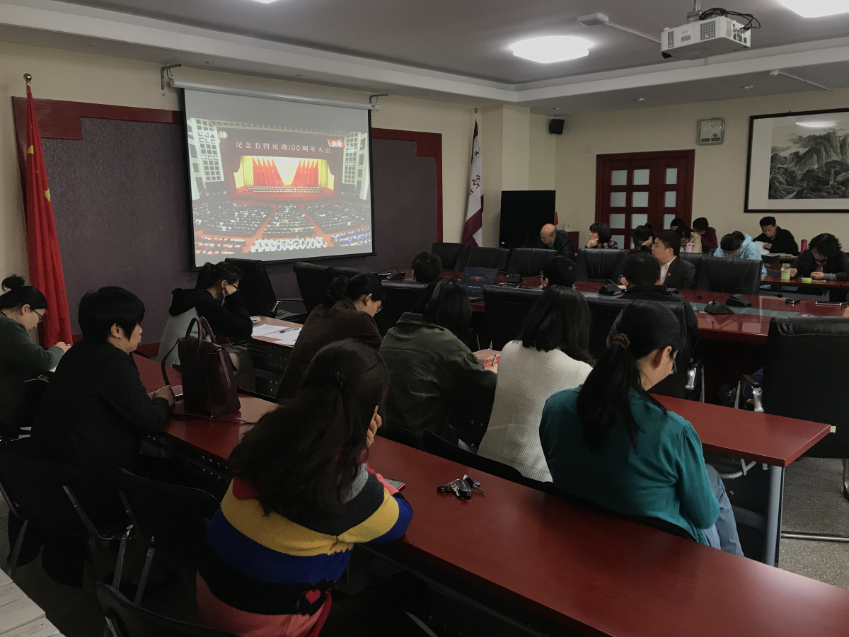 2019年4月30日上午10点30分,beat365在线唯一官网党委在励学楼201会议室组织学院教工党员及学生党员集中观看纪念五四运动100周年大会,一同学习习近平总书记的重要讲话。