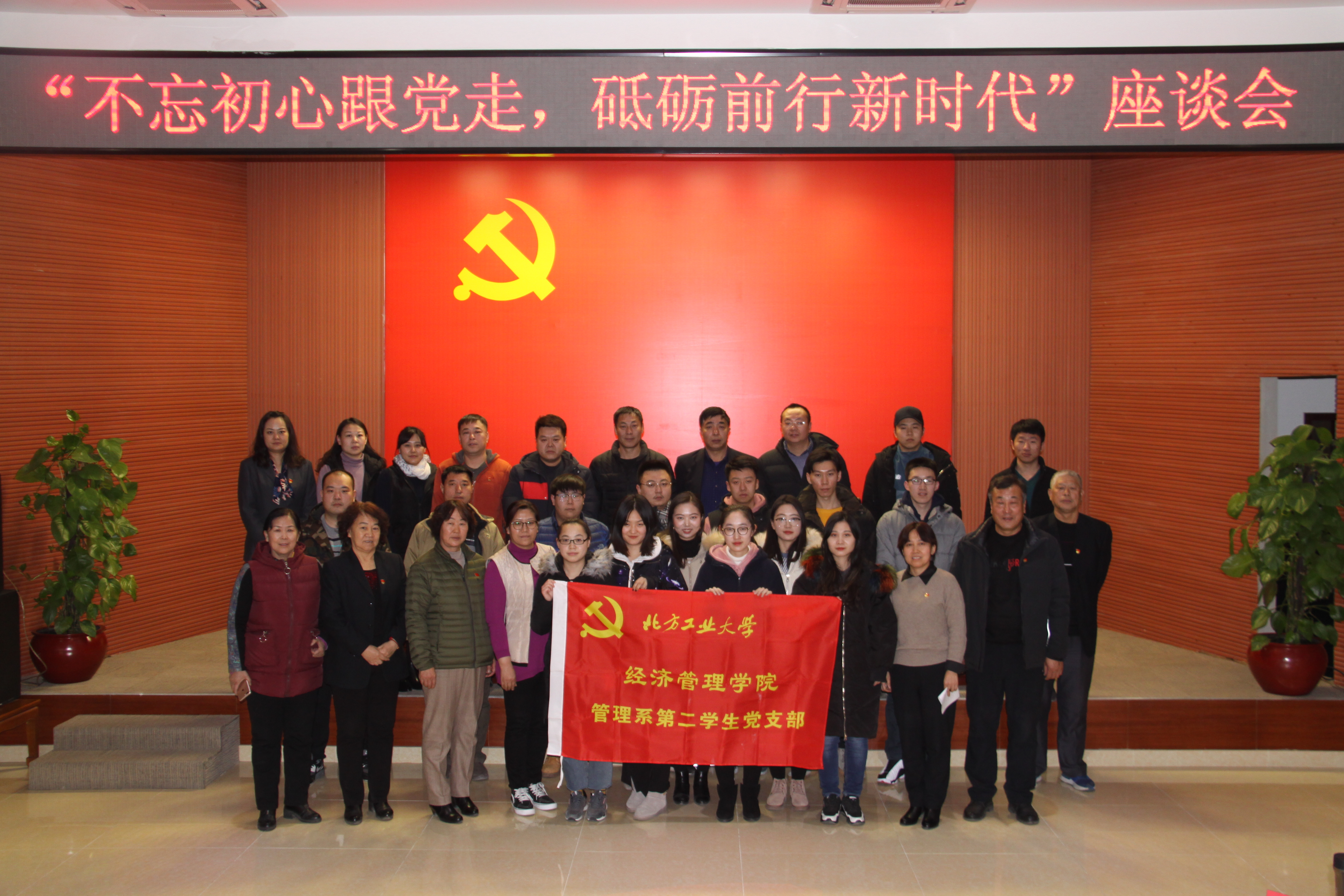 2019年1月9日下午14点,经管学院管理系第二学生支部党员14人,赴北京兴盛恒泰投资管理公司本部所在地五里坨村,在该公司礼堂,与该公司机关支部的20名党员共同召开“不忘初心跟党走,砥砺前行新时代”座谈会;会议由该公司李宏云书记主持。